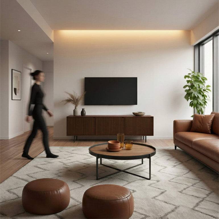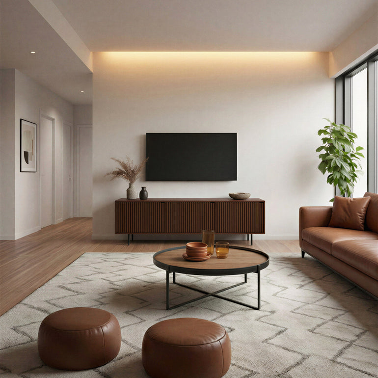 Both. The Pau Collection comes in two formats: a Sideboard (80 cm tall, ideal for living rooms, dining rooms or hallways) and a TV Stand (55 cm tall, designed to sit below a screen). Same design language, different functions — you choose the one that suits your space.