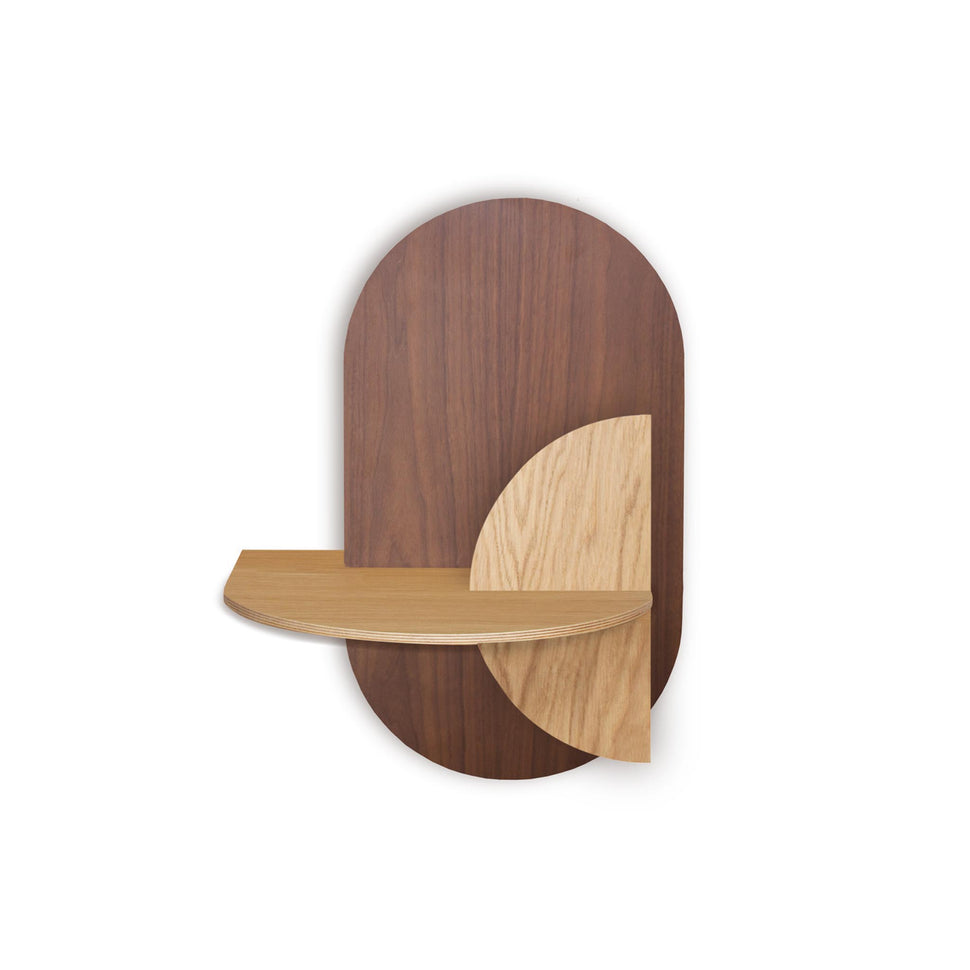 A versatile piece of furniture that can be used as a wall shelf with hidden storage and as a bedside table with concealed storage. Alba means “sunrise” in Spanish, hence its name, since the two front pieces of the product simulate the sun and the moon reflecting in the water when a new day dawns.