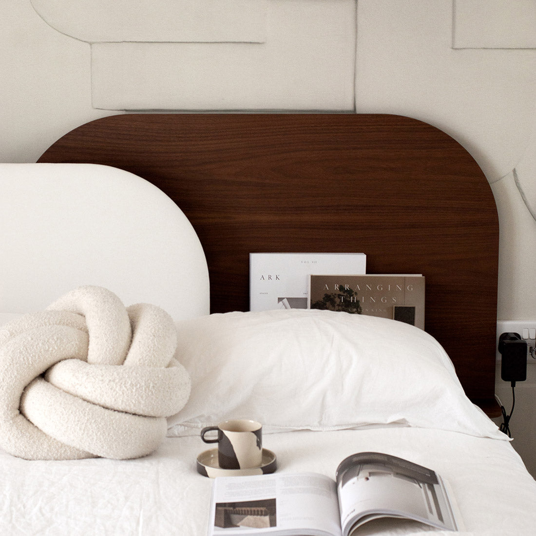 The word ALBA means “dawn or dusk” in Spanish, and the iconic shapes of the collection pieces resemble the shape of the sun hiding on the horizon, and reflecting on the water. With organic oval shapes that overlap to create a one-of-a-kind composition, Alba Headboard is designed to bring personality and a part of nature inside.
