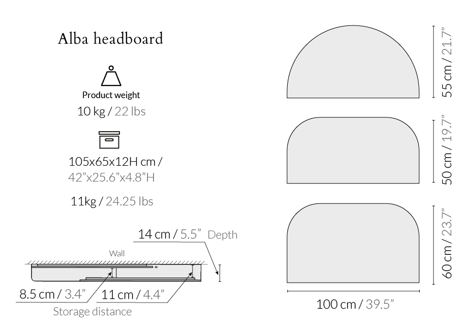 Our Alba Headboard consists of two panels that overlap in the center, available in either sustainable wood finish or beautiful textile, and combined with a hidden shelf for small everyday items. Easily decide at home how to install them thanks to all panels being interchangeable. The piece is completed with the possibility to add minimalistic dimmable backlighting.