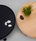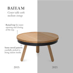 The medium-sized member of the Batea family is not just a wood side table, it has extra functionality, a small storage space where you can keep those small everyday objects out of sight and organized.