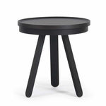 Designed with clean and rounded lines, this side wood coffee table consists of a tray made out of wood veneer and three legs of solid wood that can be easily fixed to its lacquered metal structure.