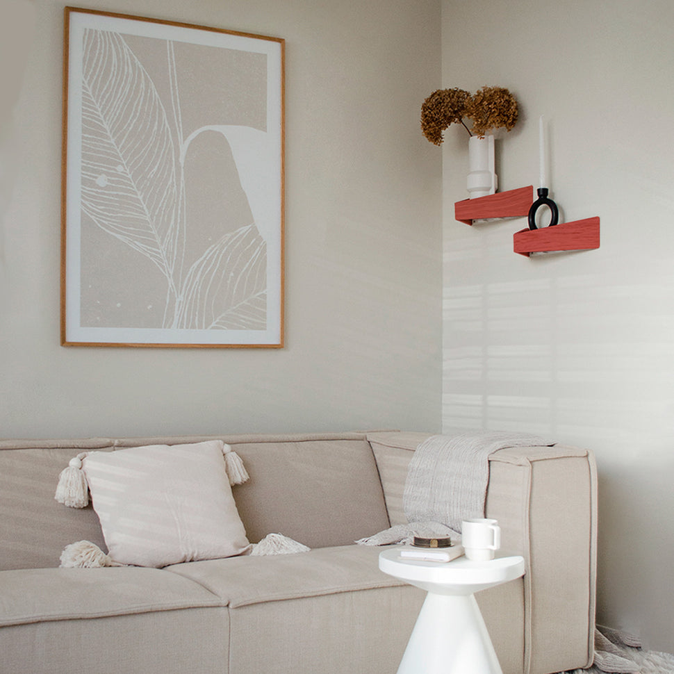 A floating wooden shelf with minimalist lines and hidden hooks underneath. Display books and art on top while bags, headphones, or towels hang below. Clean, modular, and sturdy; available in multiple finishes and lengths. Easy to install, perfect for small spaces that demand style and order.