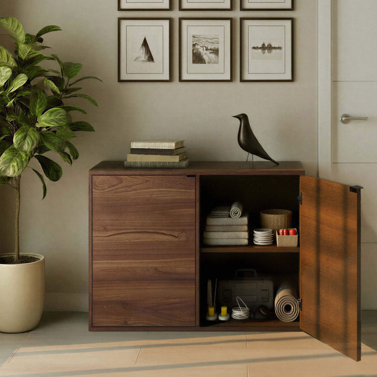 Both. The Pau Collection comes in two formats: a Sideboard (80 cm tall, ideal for living rooms, dining rooms or hallways) and a TV Stand (55 cm tall, designed to sit below a screen). Same design language, different functions — you choose the one that suits your space.