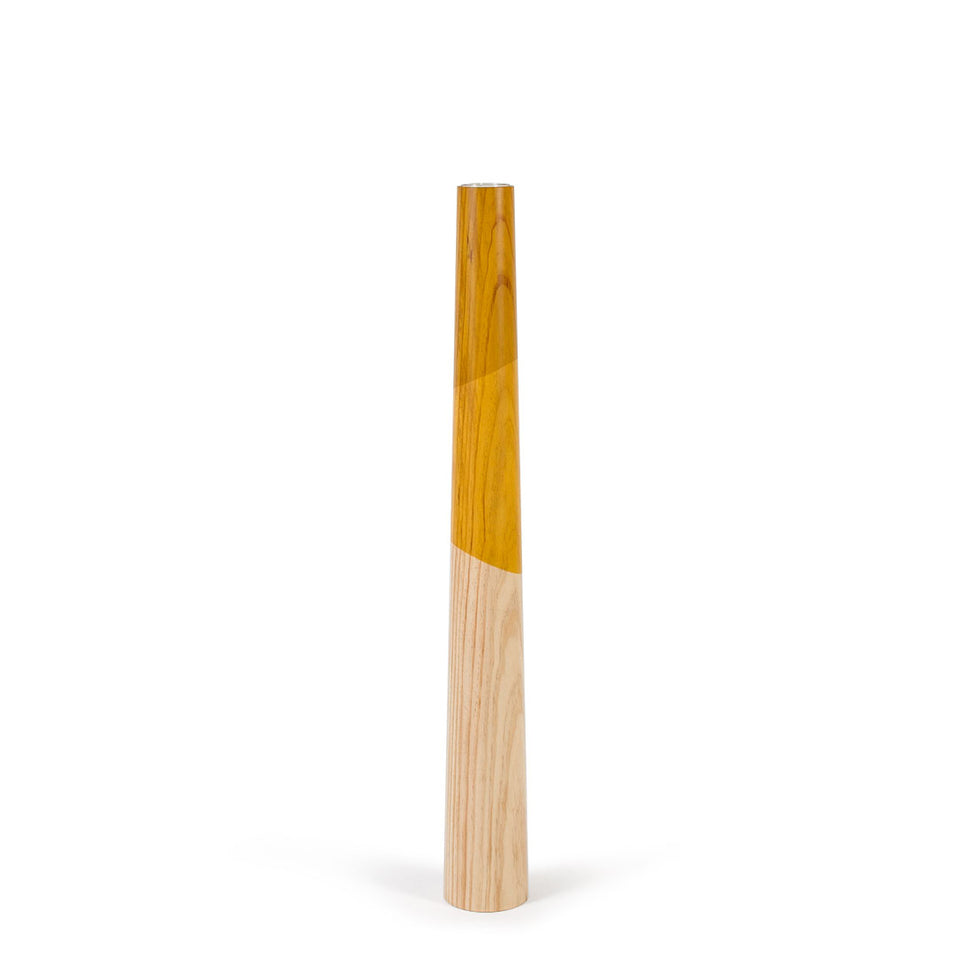 A collection of large standing wooden candle holders, ideal to give a touch of light and color to any environment. Simple and clean lines with a conical shape made of solid wood, and a design inspired by nature.
