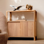 Cloe · Wit gepigmenteerde eikenhouten bijzettafel met houten deuren