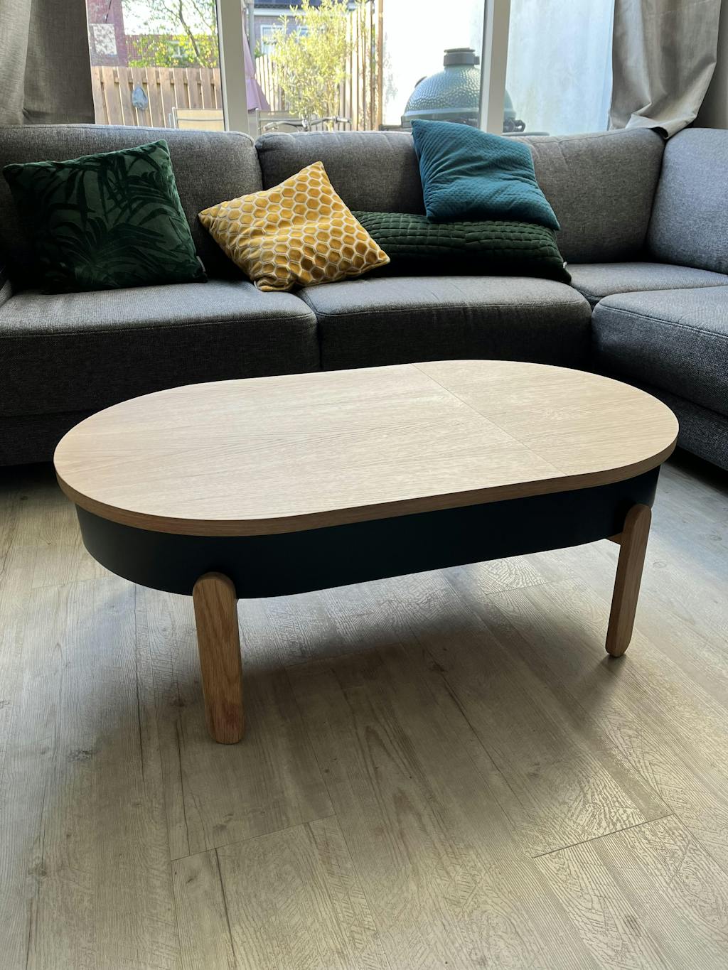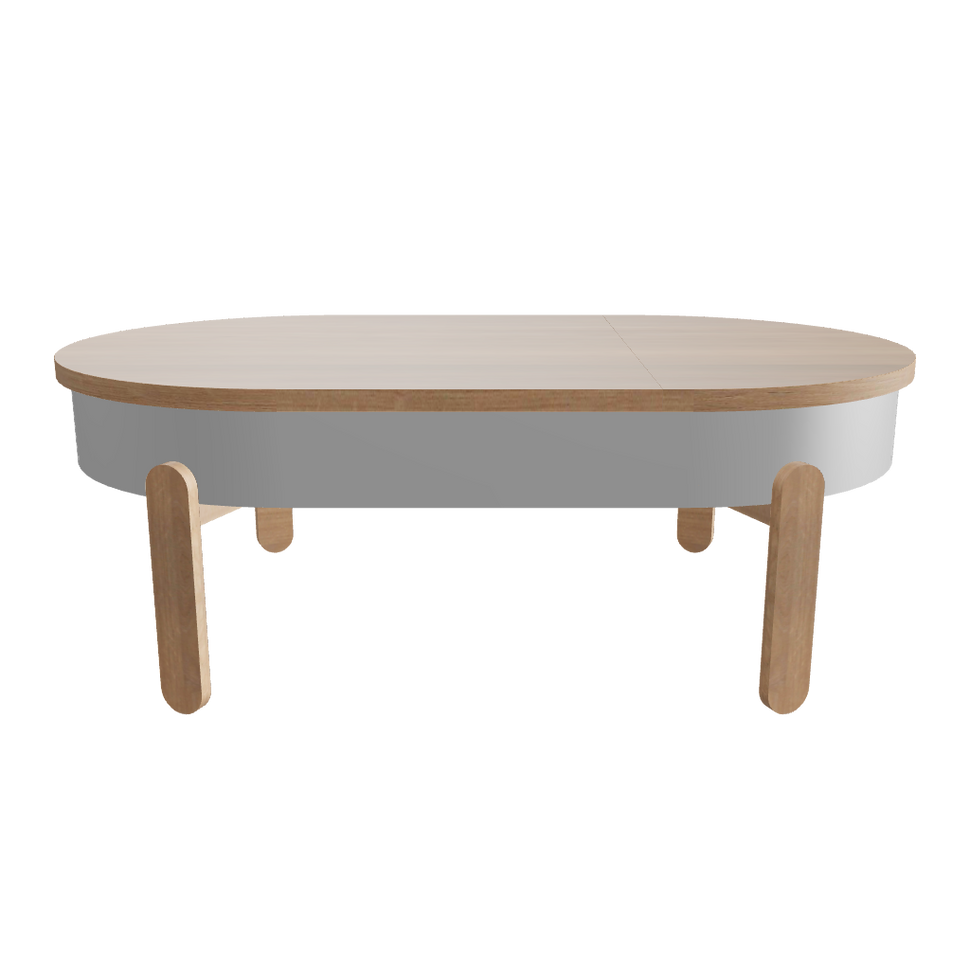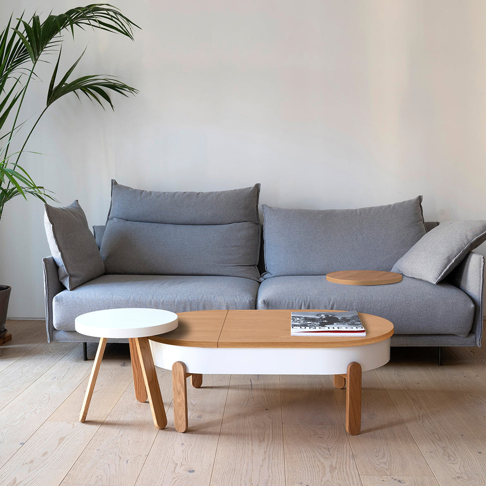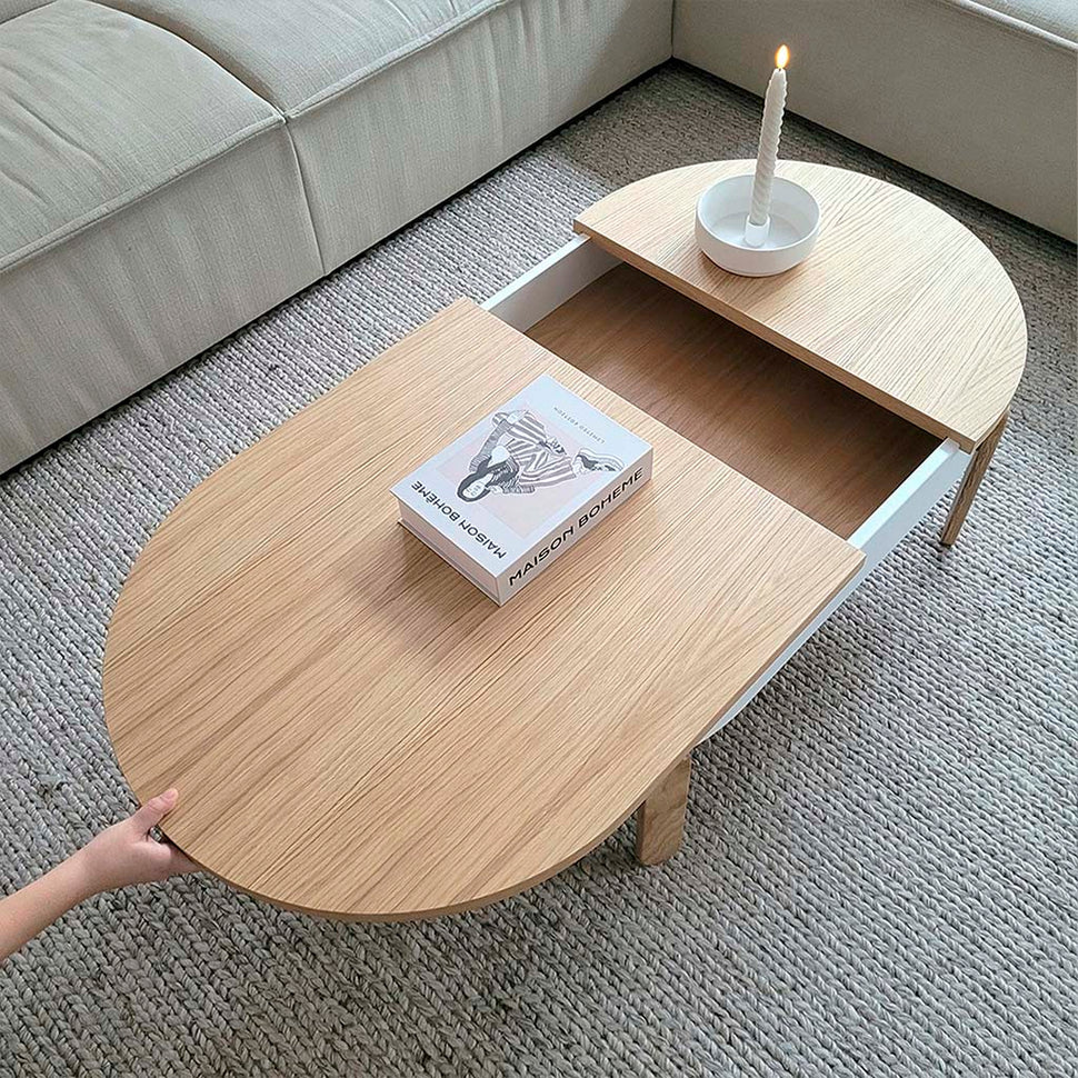 The largest member of the Batea family has a storage space that opens when the tabletop slides. A carefully designed center table with storage that combines craftsmanship and modernity, adapting to the dynamics of each space.
