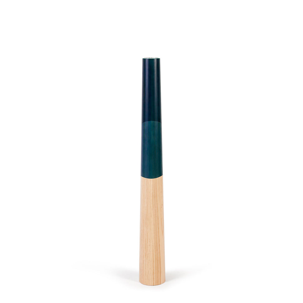 A collection of large standing wooden candle holders, ideal to give a touch of light and color to any environment. Simple and clean lines with a conical shape made of solid wood, and a design inspired by nature.