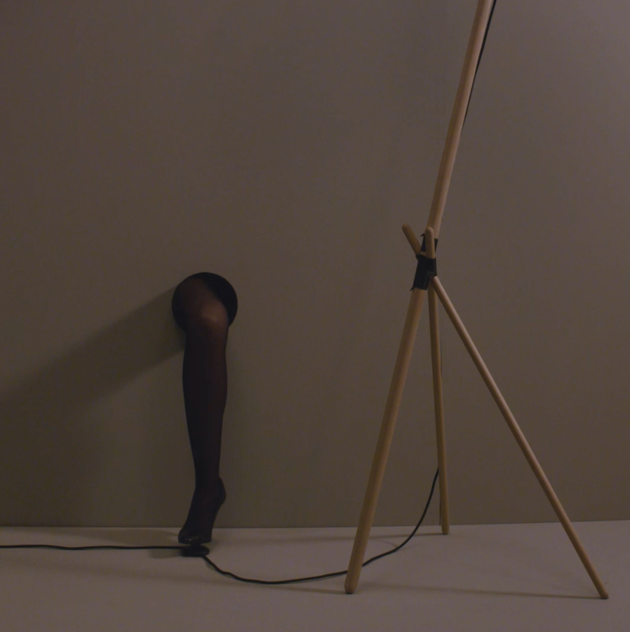 This piece its characterized by its simple and elegant lines that are drawn from an elegant structure of cylindrical beech wood slats, in the shape of a tripod, and are joined together by a leather cord. Additionally, at the top of the pole there is a large metal screen that filters light through a natural cotton diffuser that creates warm and welcoming spaces.