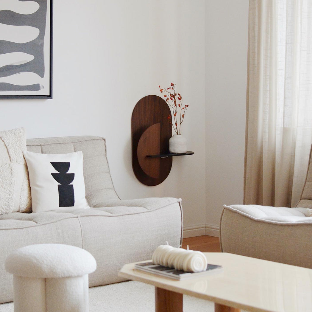Modular wall shelf with a sculptural touch that brings personality and elegance to your home. Alba is fully customisable with over 10,000 possible options due to its multitude of shapes and finishes available.