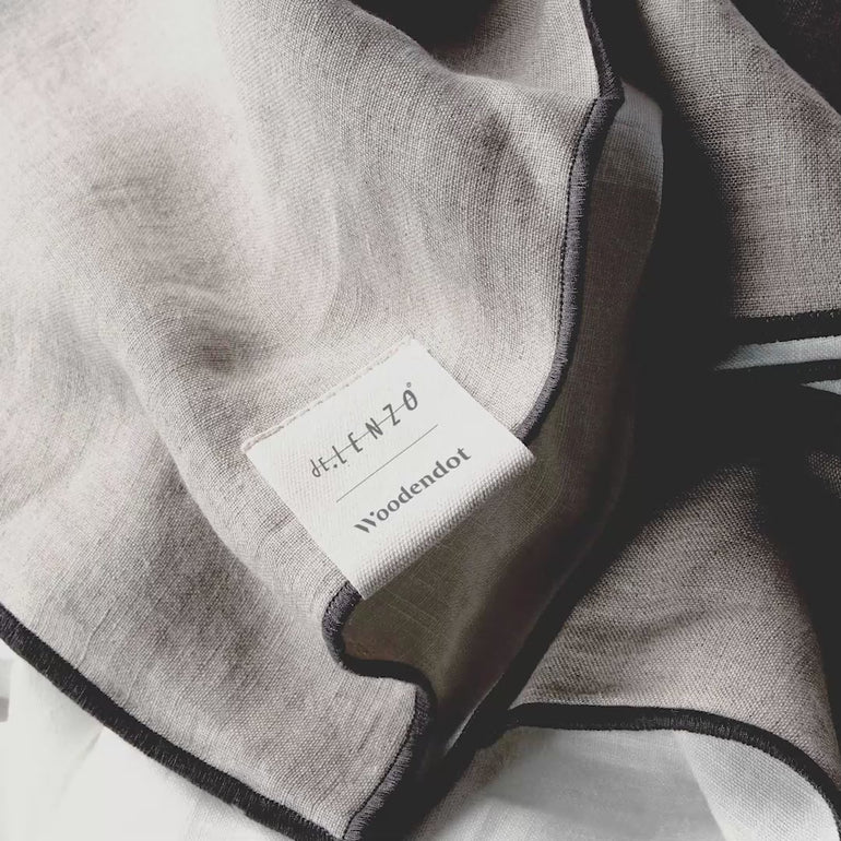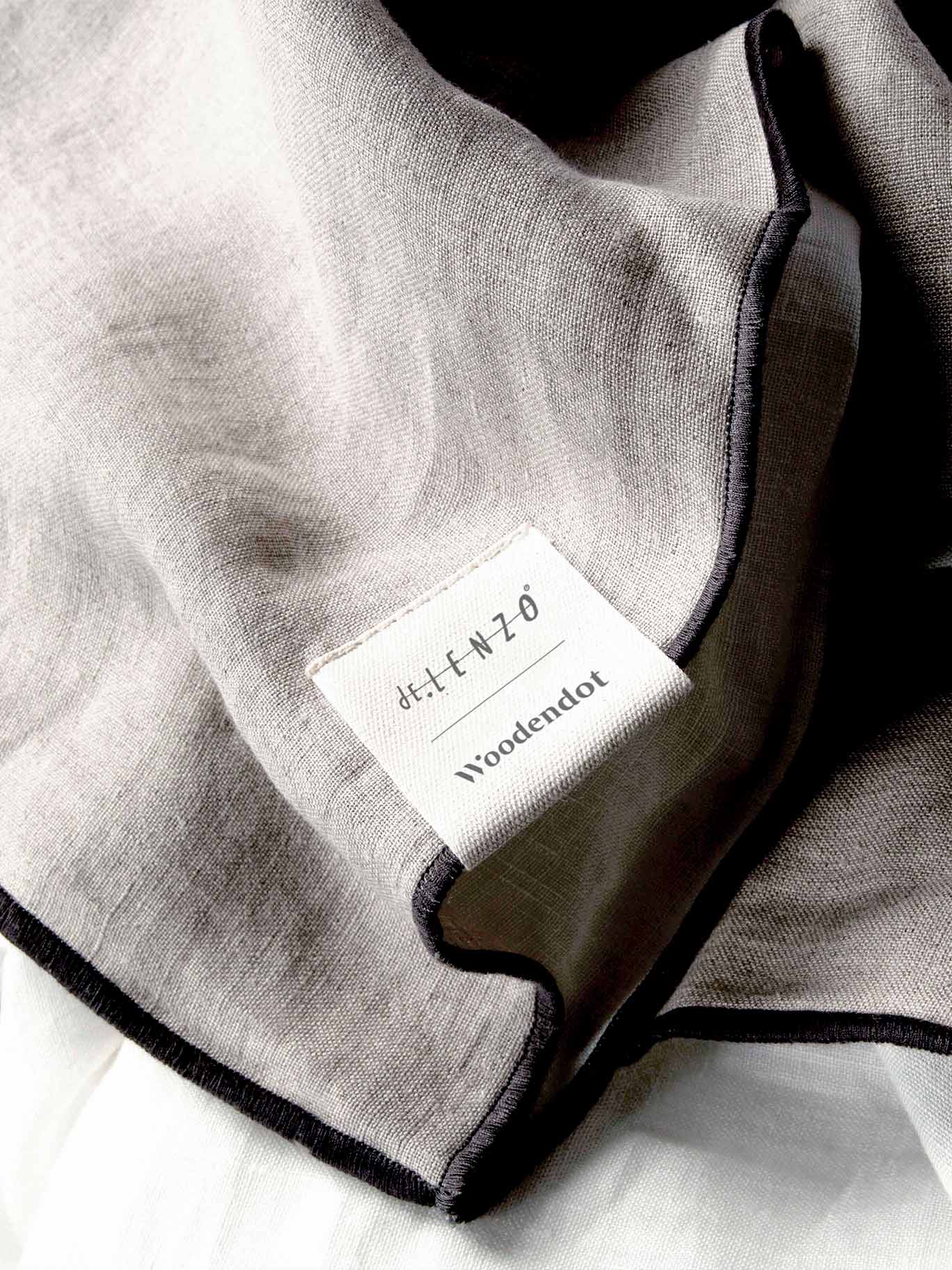 The color combination of the reversible fabrics, and the hem stitching are a co-creation of Woodendot and De Lenzo. The grey color finish is unique for Woodendot.