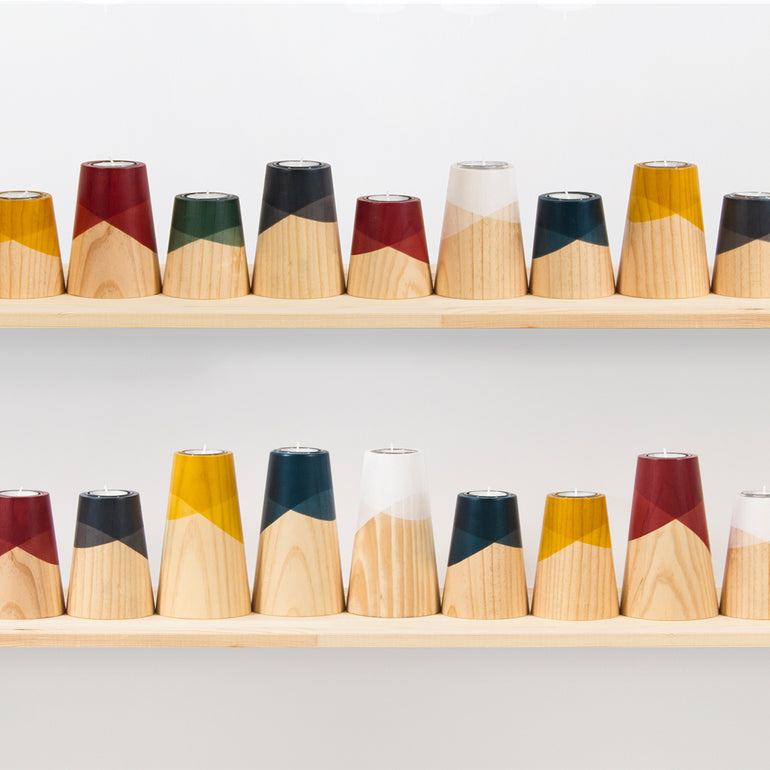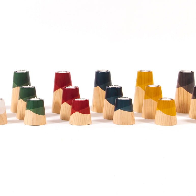 Its translucency highlights the natural tonalities of the wood giving the product elegance and personality. Also, this wooden candle holders collection is available in sets of three pieces and in a palette of six different. All of these colors were carefully chosen to fit in any decor design and minimalist space.
