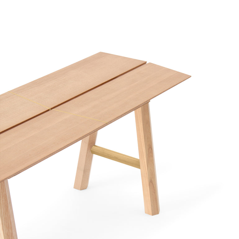Composed of hexagonal shaped legs, with its top divided by two lacquered wood nerves that look very similar to the lines on a leaf, the Savia bench outstands for its minimalistic and innovative design.
