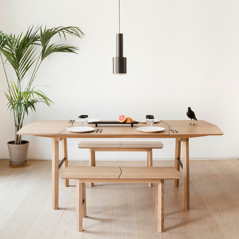 Its wooden dining bench, the smallest of the Savia family, is an exceptional partner for its table sister. Both pieces, built-in hexagonal shapes, resemble the lines of a leaf count and count with really practical dimensions, 100 cm long, 36 cm wide and 45 cm tall.