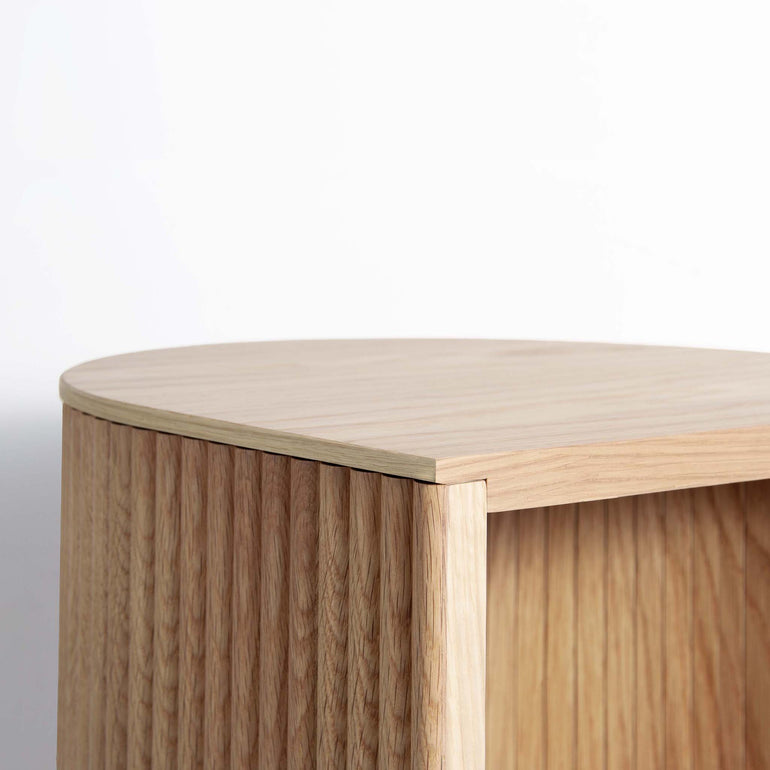 A shifting stool with the possibility of being used as a seat, including a storage space perfect for blankets or books. With an iconic texture that makes an automatic statement piece that completes a room with a memorable look. And even more functional, with its design perfectly connecting giving the possibility of connecting two stools in the center and creating a side or center table.