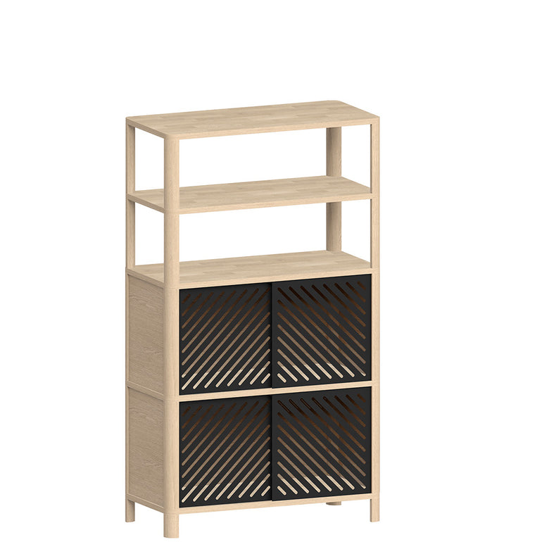 Cloe · Weiß pigmentiertes Eichenregal (eine Einheit) mit schwarzen Metalltüren