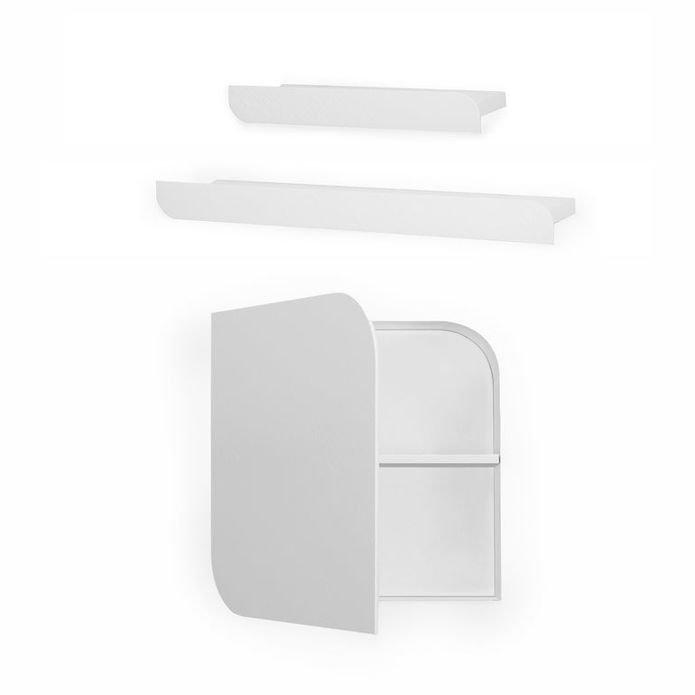 From this design, the width and length of each piece vary to make their functionality more specific as a shelf, hook, or wall cabinet.