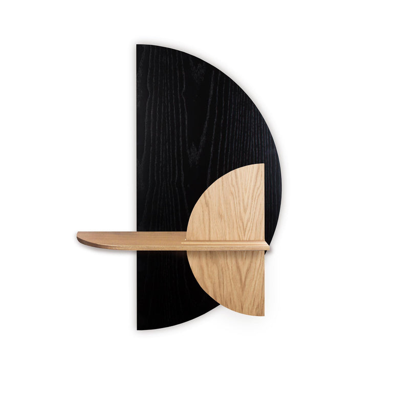 A versatile piece of furniture that can be used as a wall shelf with hidden storage and as a bedside table with concealed storage. Alba means “sunrise” in Spanish, hence its name, since the two front pieces of the product simulate the sun and the moon reflecting in the water when a new day dawns.