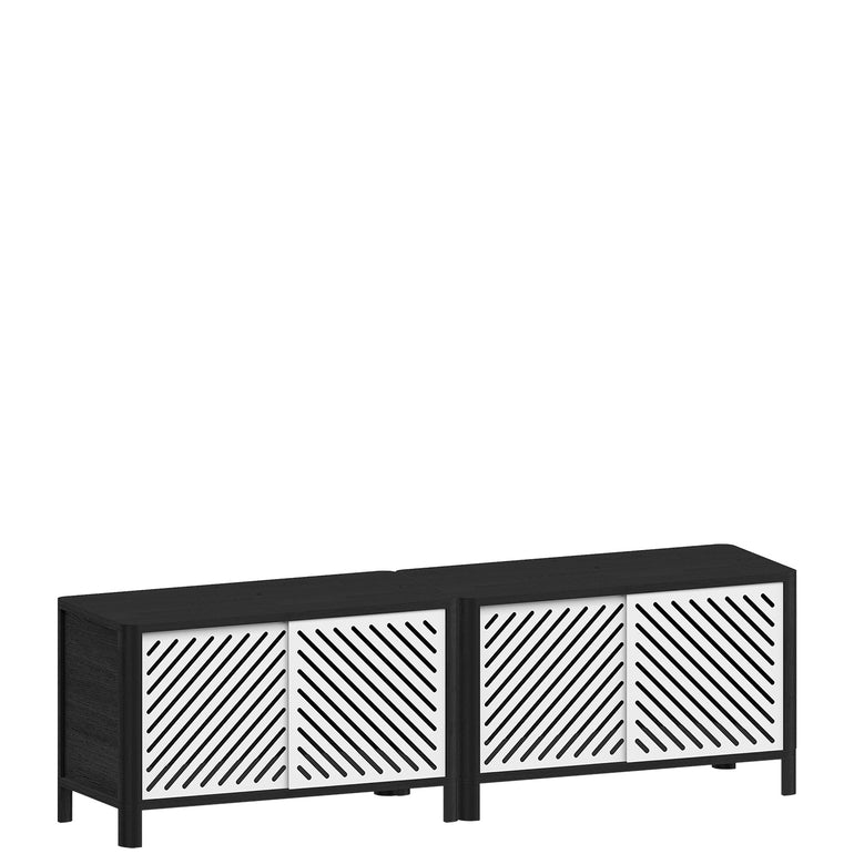Cloe · Schwarzes TV-Regal mit weißen Metalltüren