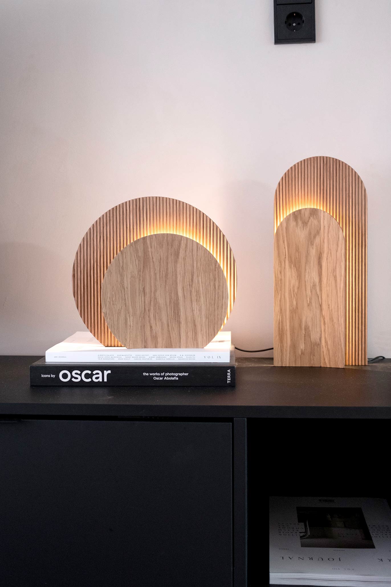 In their unique design, LUA’s lighting pieces are composed of three panels carefully positioned to portray the light organically, forming a kind of halo that, hand in hand with its light intensity, creates the perfect atmosphere.