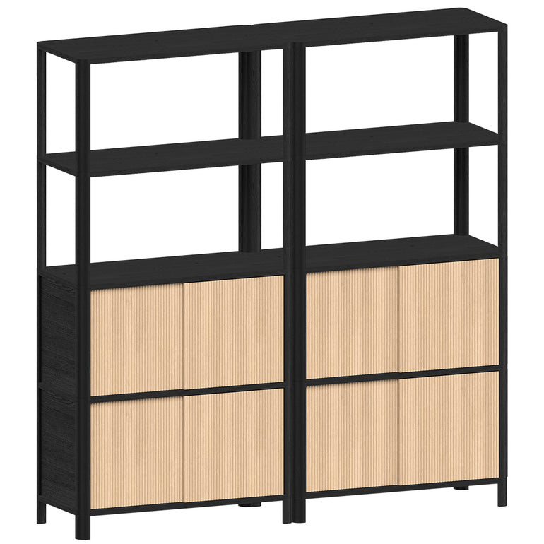 Three horizontal modules available in two different heights. A closed high module that allows to add doors, an open high module without doors, and an open short module.