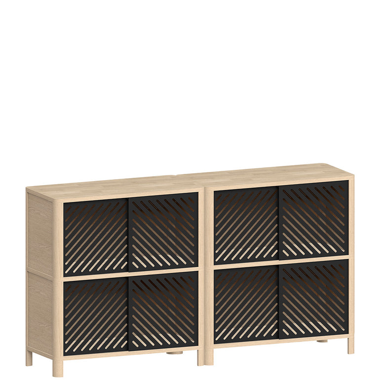 Three horizontal modules available in two different heights. A closed high module that allows to add doors, an open high module without doors, and an open short module.
