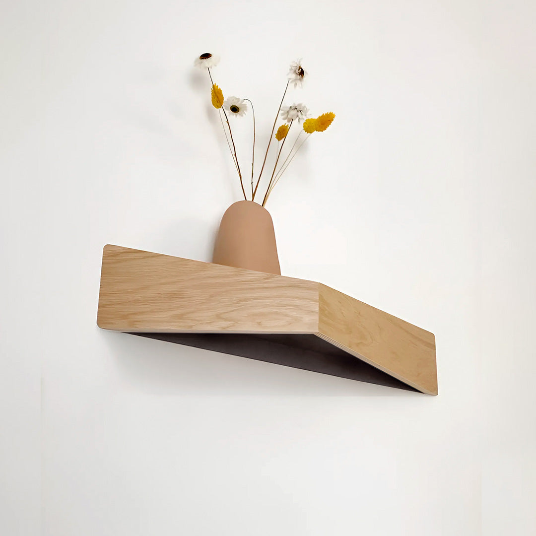 A floating wooden shelf with minimalist lines and hidden hooks underneath. Display books and art on top while bags, headphones, or towels hang below. Clean, modular, and sturdy; available in multiple finishes and lengths. Easy to install, perfect for small spaces that demand style and order.
