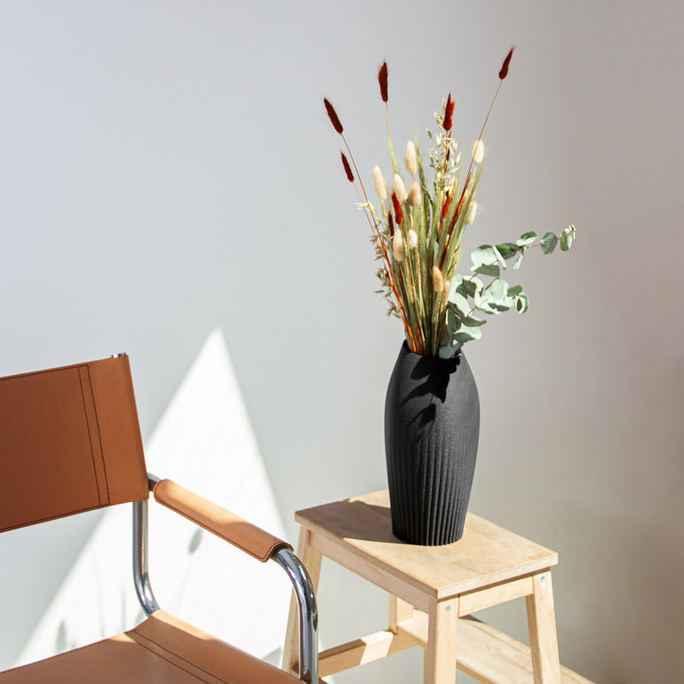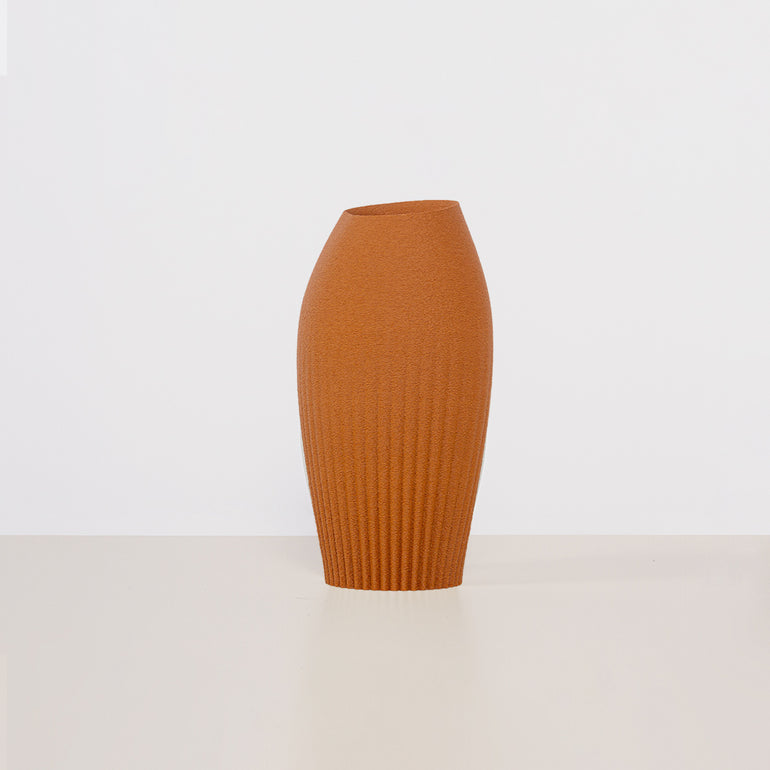 Introducing the Sedona vases, a 3D printed decorative piece crafted with eco-friendly plant-based plastic and 30% wood fibers from sustainable forests. Co-created with Mendelek Studio, Its antelope canyon-inspired shape adds a stylish, slender, and elegant touch to your home.