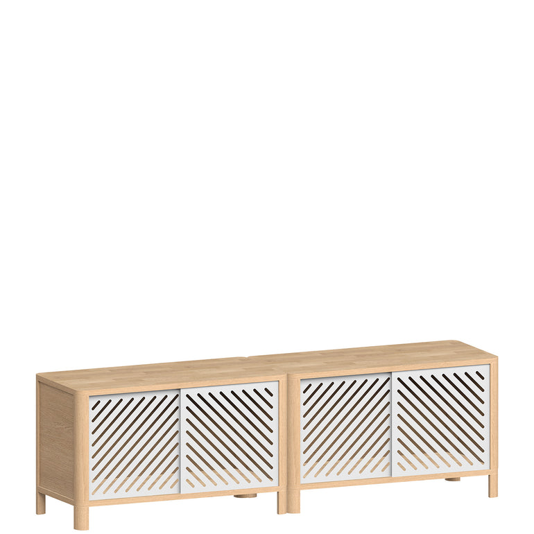 Side and back panels of the closed modules: MDF fiber with natural Oak wood veneer.