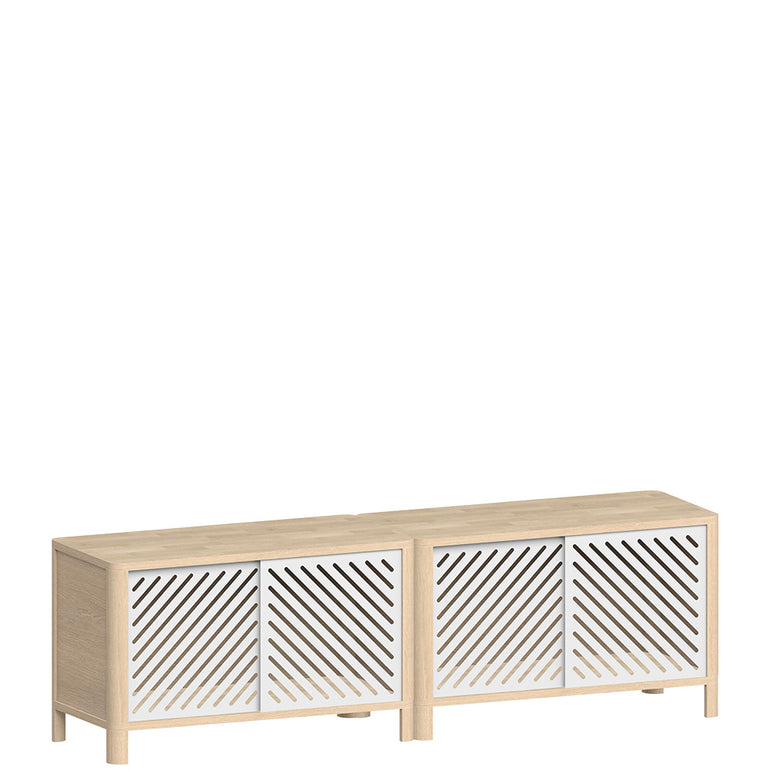 Three horizontal modules available in two different heights. A closed high module that allows to add doors, an open high module without doors, and an open short module.