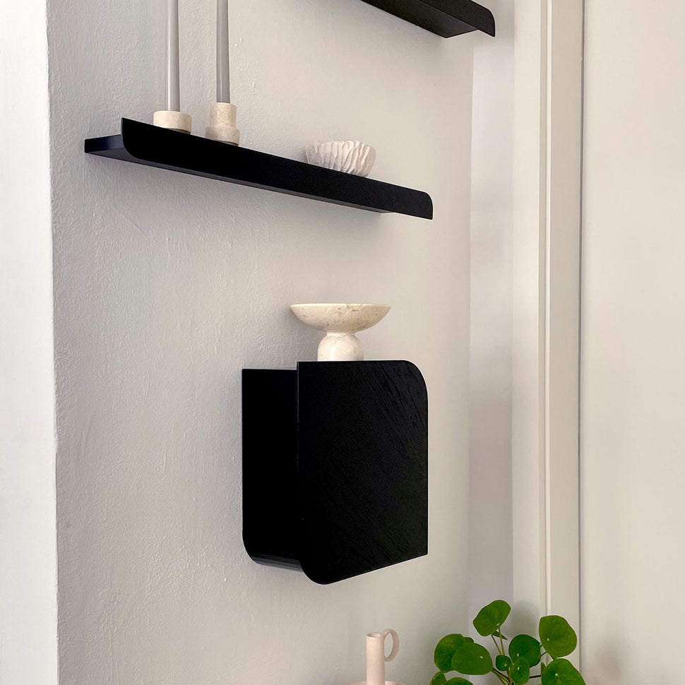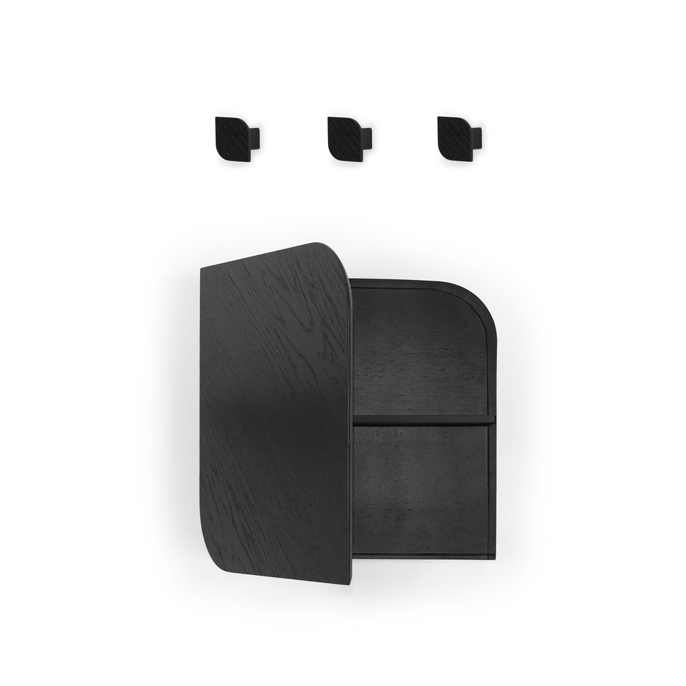 Carefully designed to work as a composition, Cielo consists of three types of pieces: a shelf (available in three different sizes), a set of hooks, and a wall cabinet. These pieces come together to create a balanced and harmonious combination that quickly enhances any space and brings nature inside.