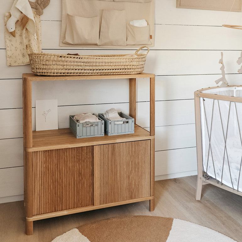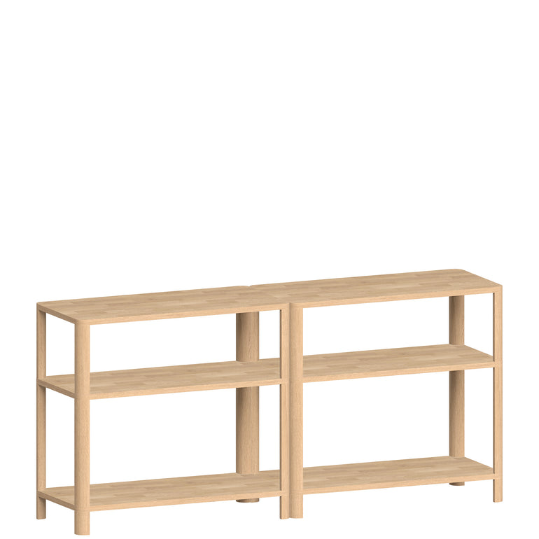Three horizontal modules available in two different heights. A closed high module that allows to add doors, an open high module without doors, and an open short module.
