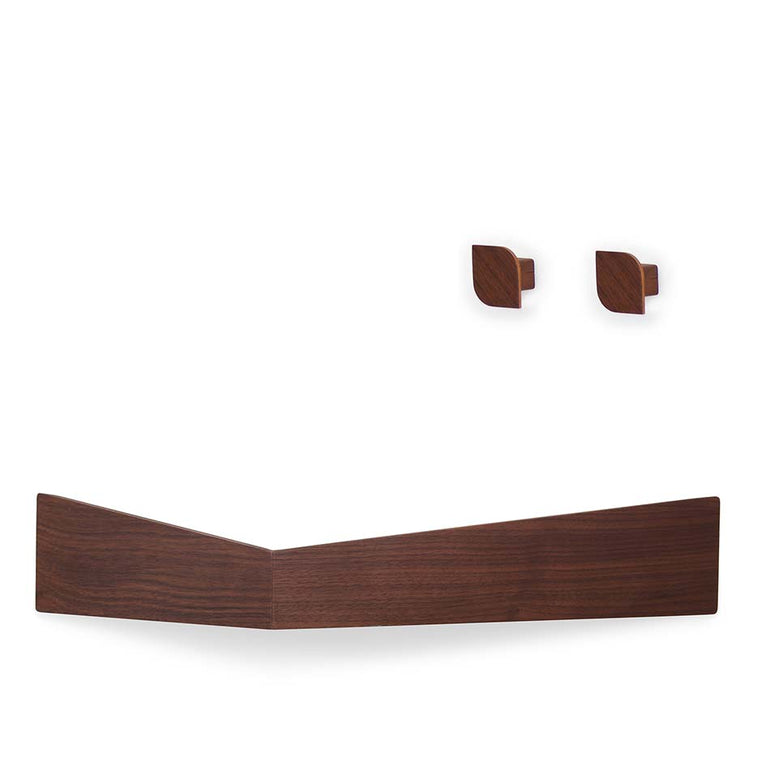 Pelican L Wall Shelf and two Cielo Wall Hooks · Walnut