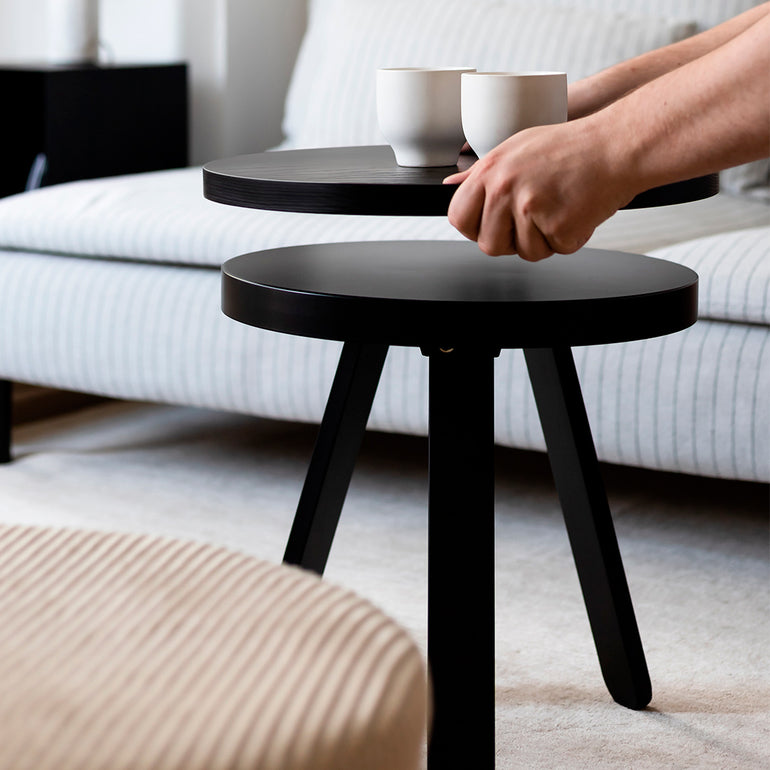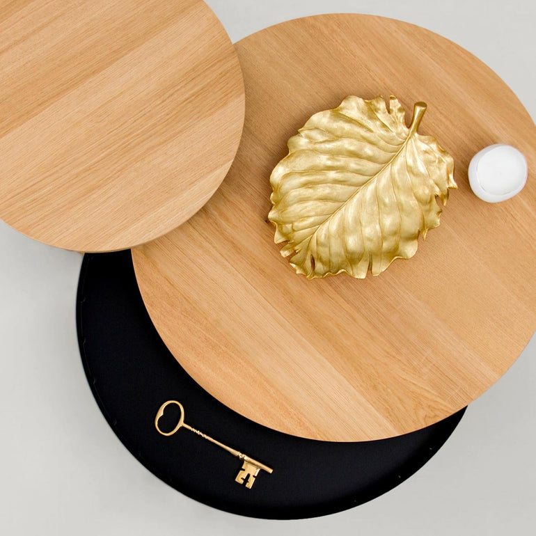 Batea M and Batea S combine perfectly, they have been designed together to make an elegant and functional storage table set. Batea M has hidden storage under its sliding lid and Batea S has a removable wooden tray that can be used separately.