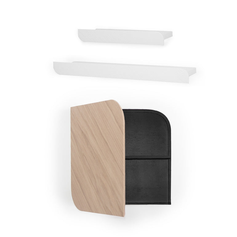 Cielo Cabinet and M+S Shelves · White pigmented oak & black and White