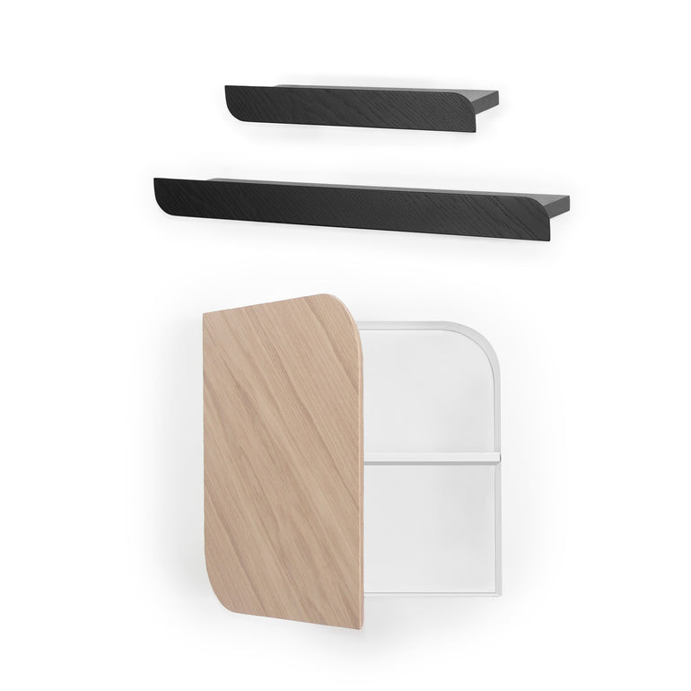Cielo Cabinet and M+S Shelves · White pigmented oak & white and Black