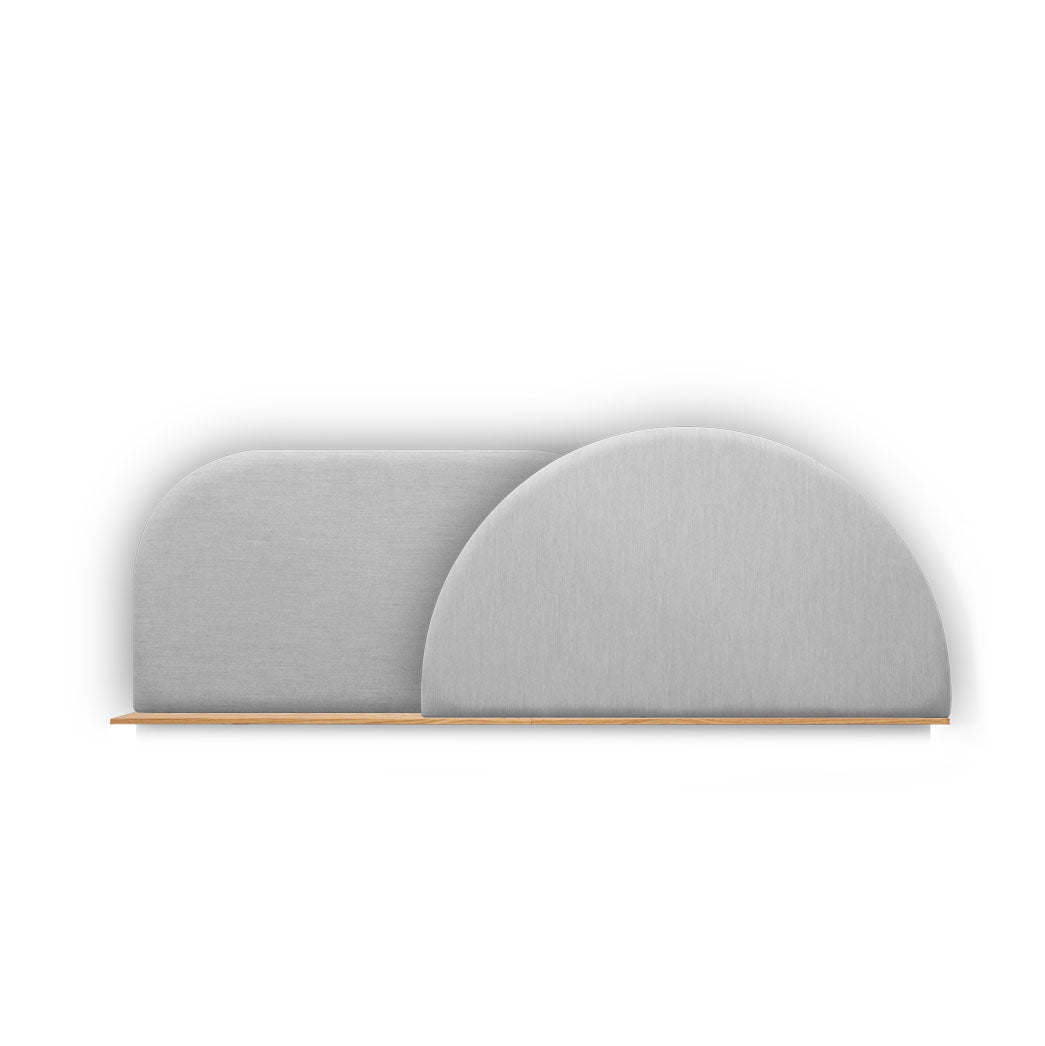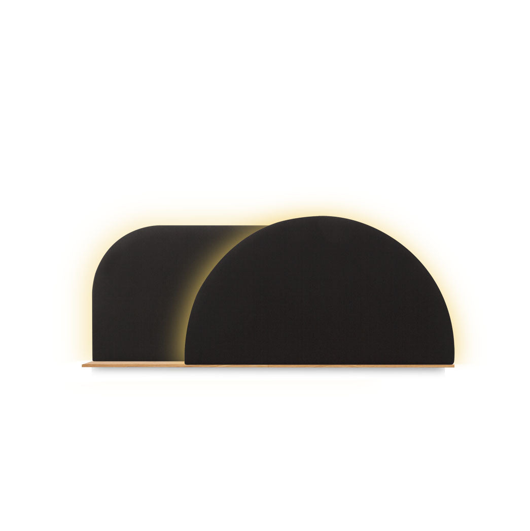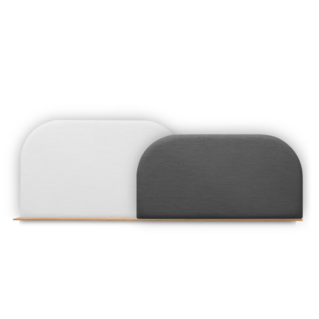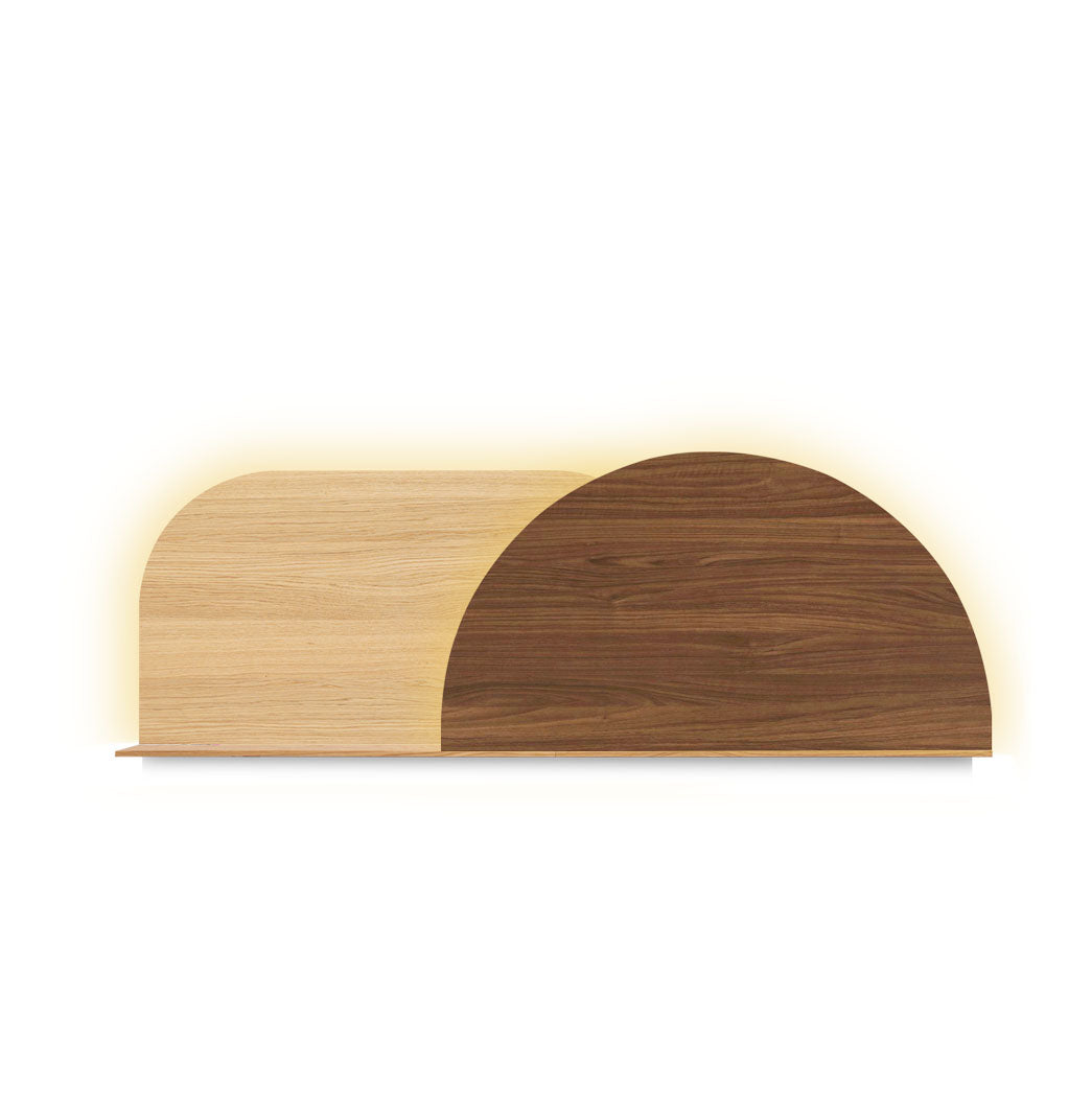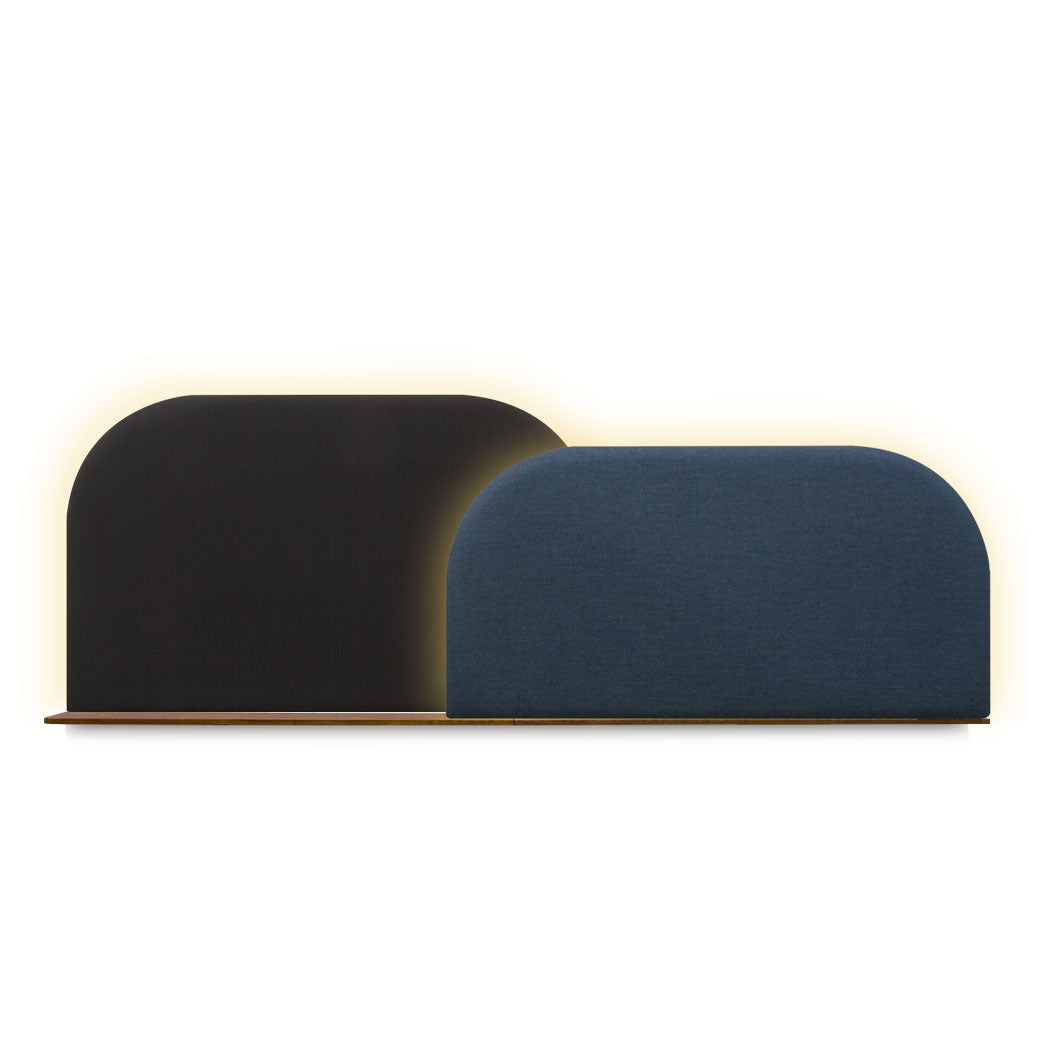 Nuestro Cabecero Alba consta de dos paneles que se superponen en el centro, disponibles en acabado de madera sostenible o hermoso textil, y combinados con un estante oculto para pequeños objetos cotidianos. Decida fácilmente en casa cómo instalarlos gracias a que todos los paneles son intercambiables. La pieza se completa con la posibilidad de añadir iluminación de fondo minimalista y regulable.