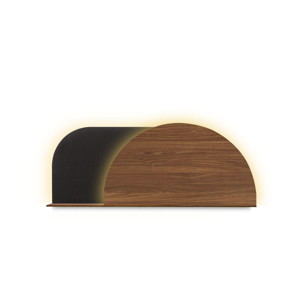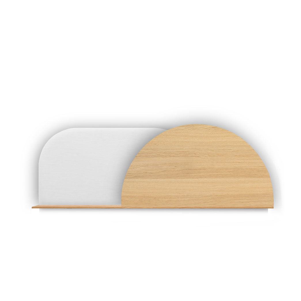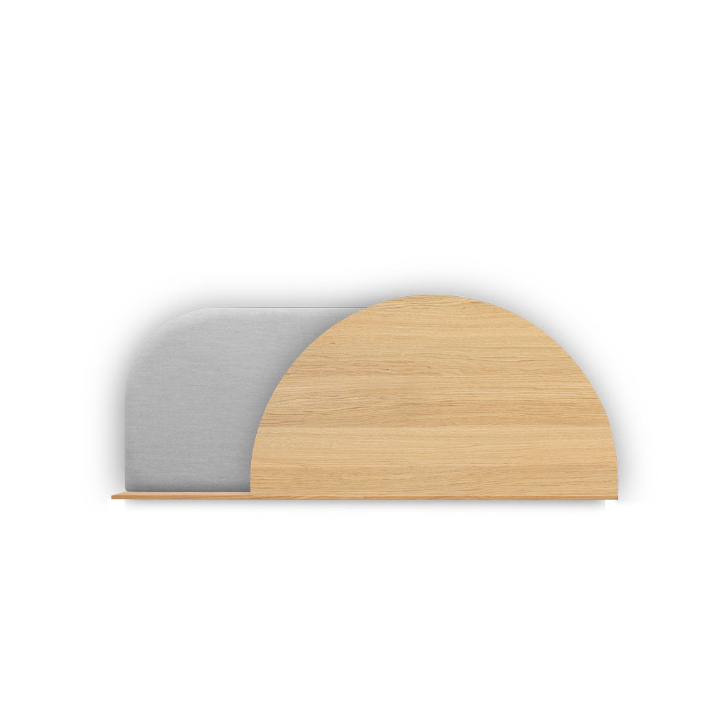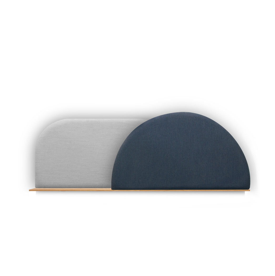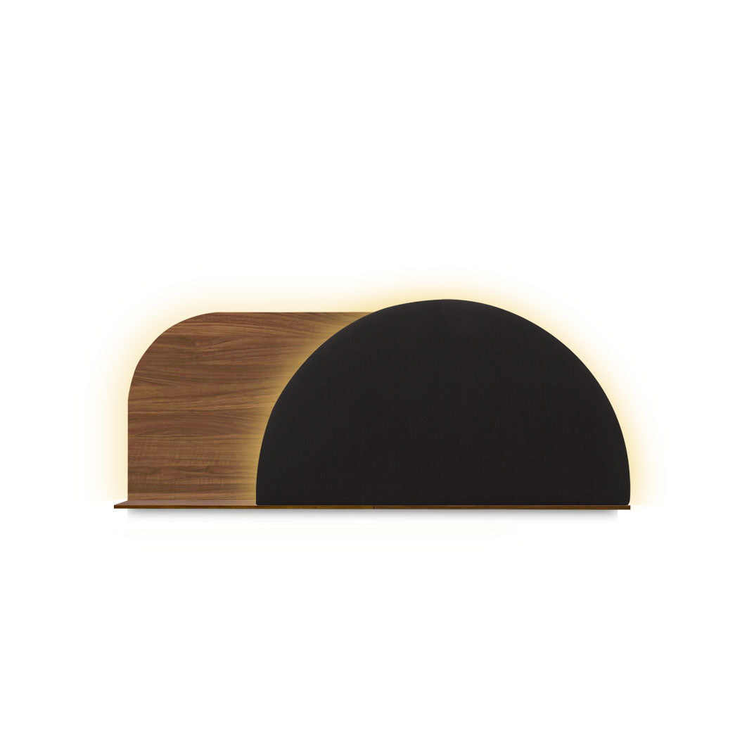 Nuestro Cabecero Alba consta de dos paneles que se superponen en el centro, disponibles en acabado de madera sostenible o hermoso textil, y combinados con un estante oculto para pequeños objetos cotidianos. Decida fácilmente en casa cómo instalarlos gracias a que todos los paneles son intercambiables. La pieza se completa con la posibilidad de añadir iluminación de fondo minimalista y regulable.