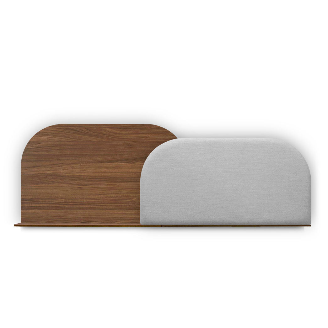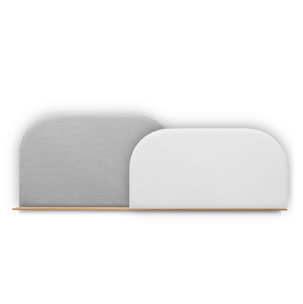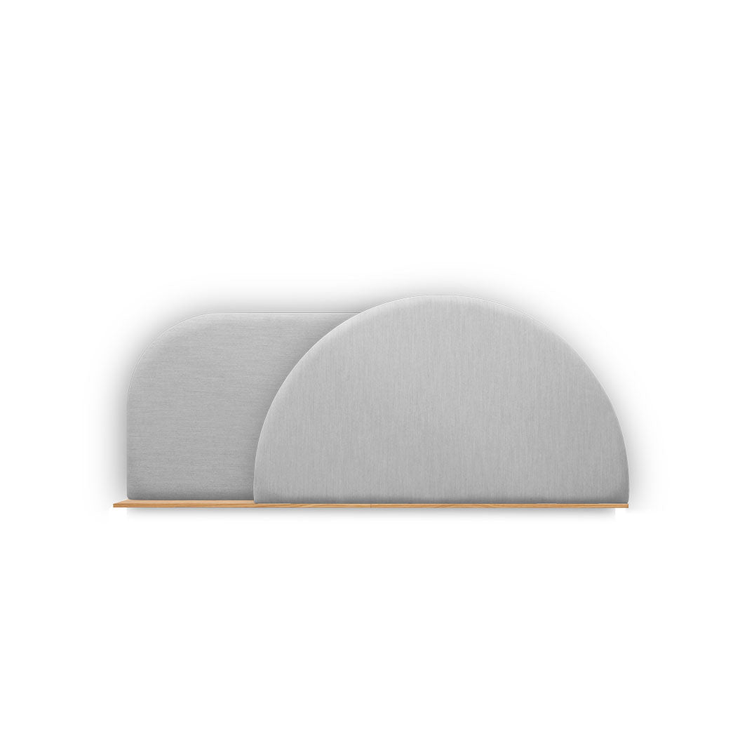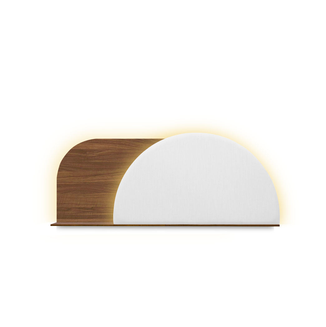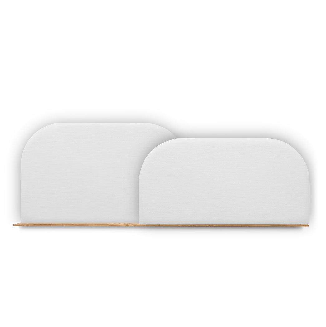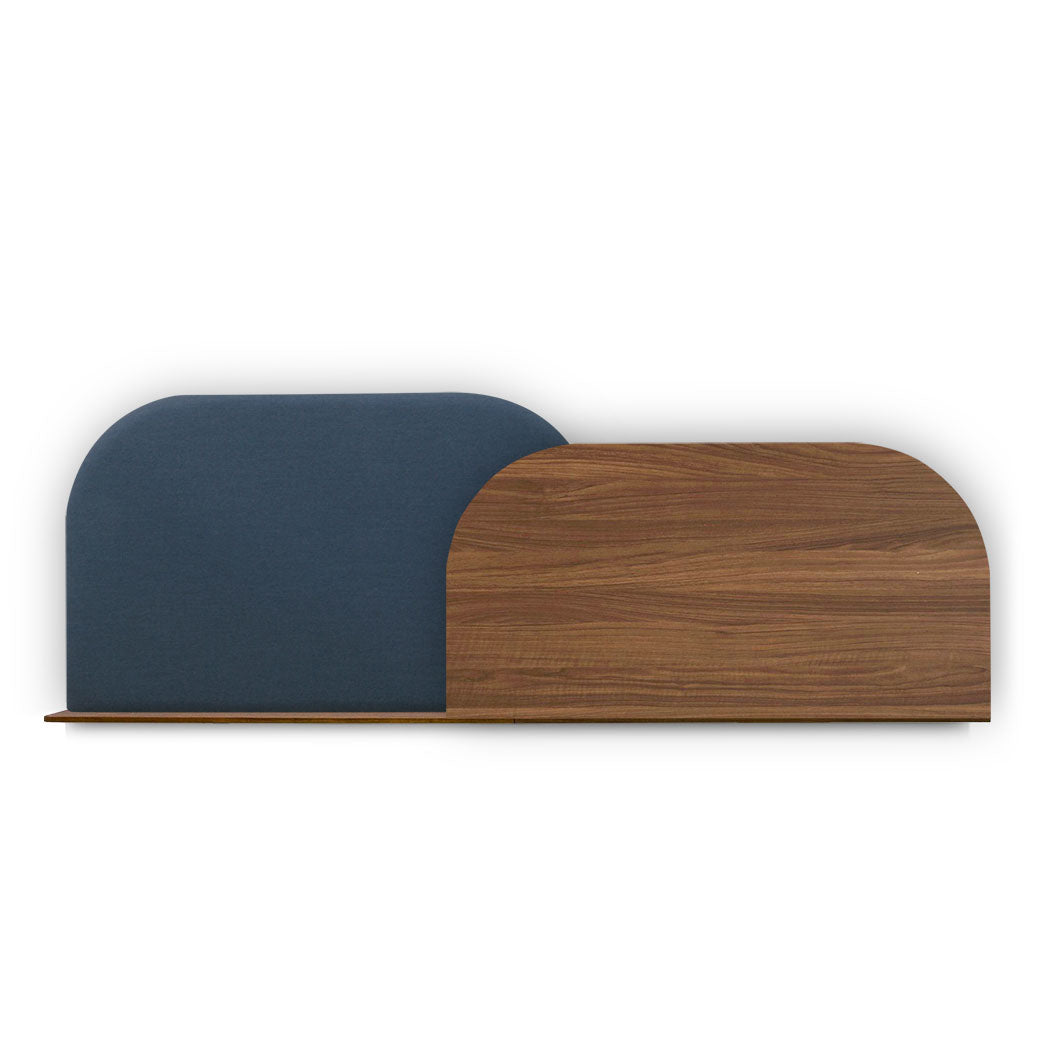 Nuestro Cabecero Alba consta de dos paneles que se superponen en el centro, disponibles en acabado de madera sostenible o hermoso textil, y combinados con un estante oculto para pequeños objetos cotidianos. Decida fácilmente en casa cómo instalarlos gracias a que todos los paneles son intercambiables. La pieza se completa con la posibilidad de añadir iluminación de fondo minimalista y regulable.