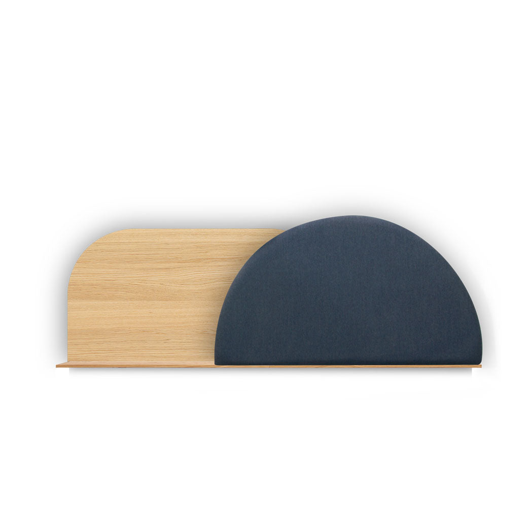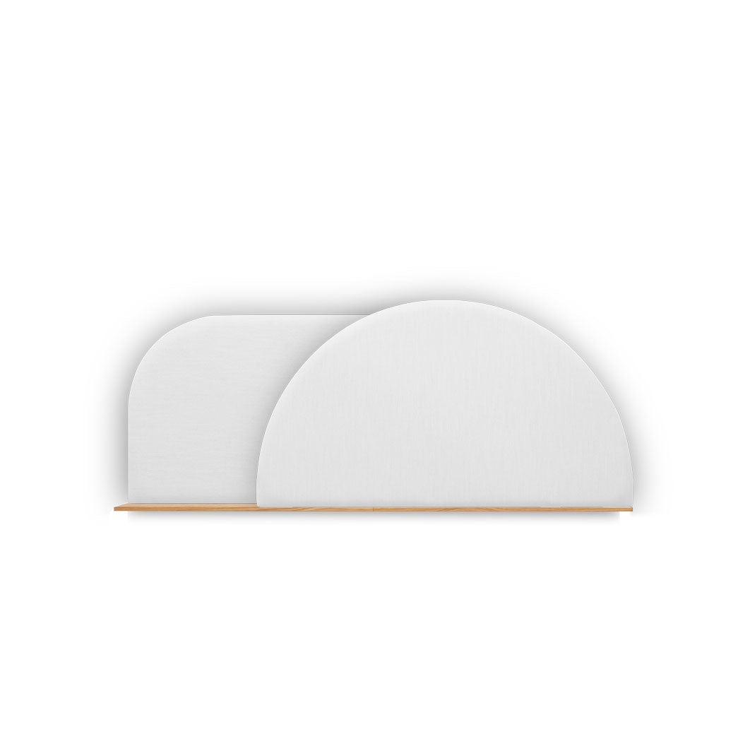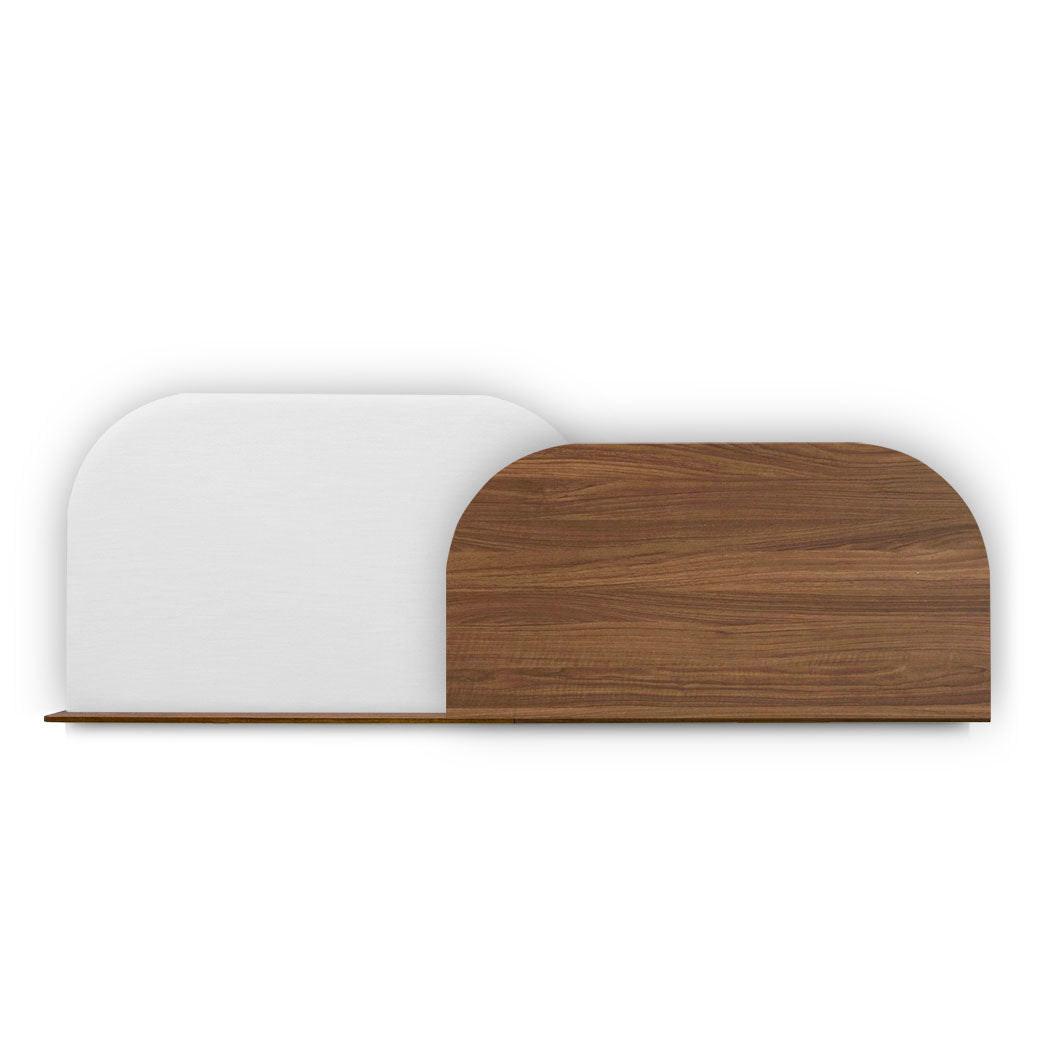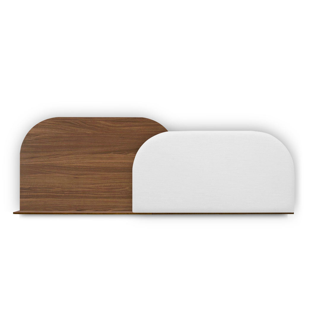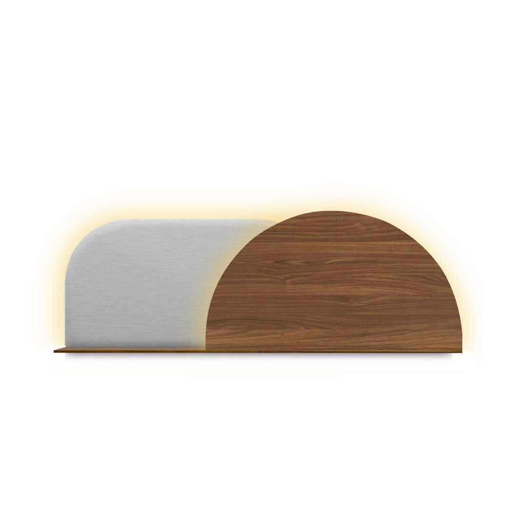 Nuestro Cabecero Alba consta de dos paneles que se superponen en el centro, disponibles en acabado de madera sostenible o hermoso textil, y combinados con un estante oculto para pequeños objetos cotidianos. Decida fácilmente en casa cómo instalarlos gracias a que todos los paneles son intercambiables. La pieza se completa con la posibilidad de añadir iluminación de fondo minimalista y regulable.