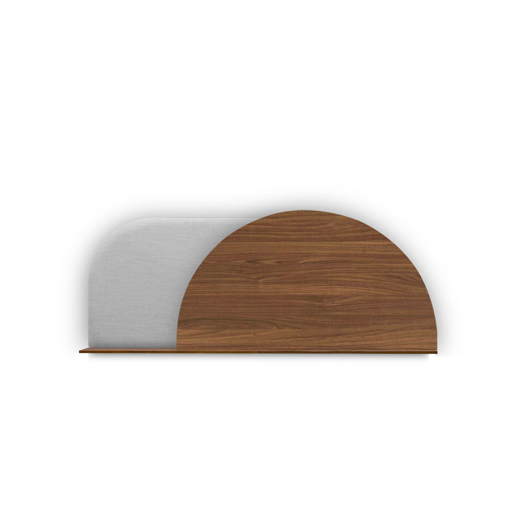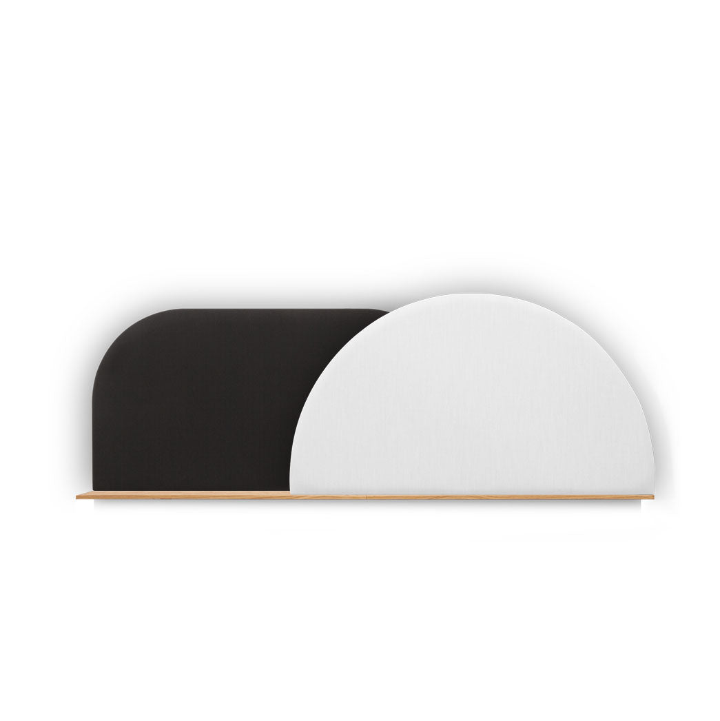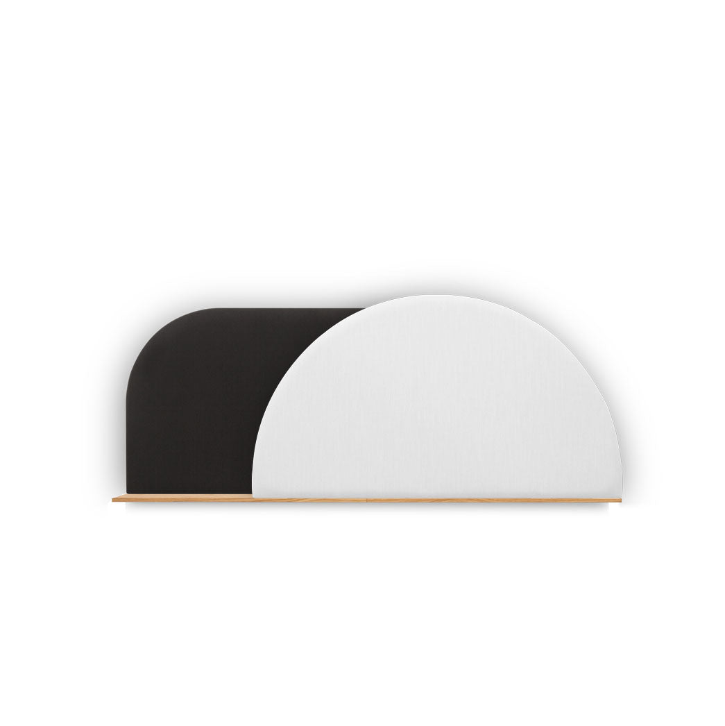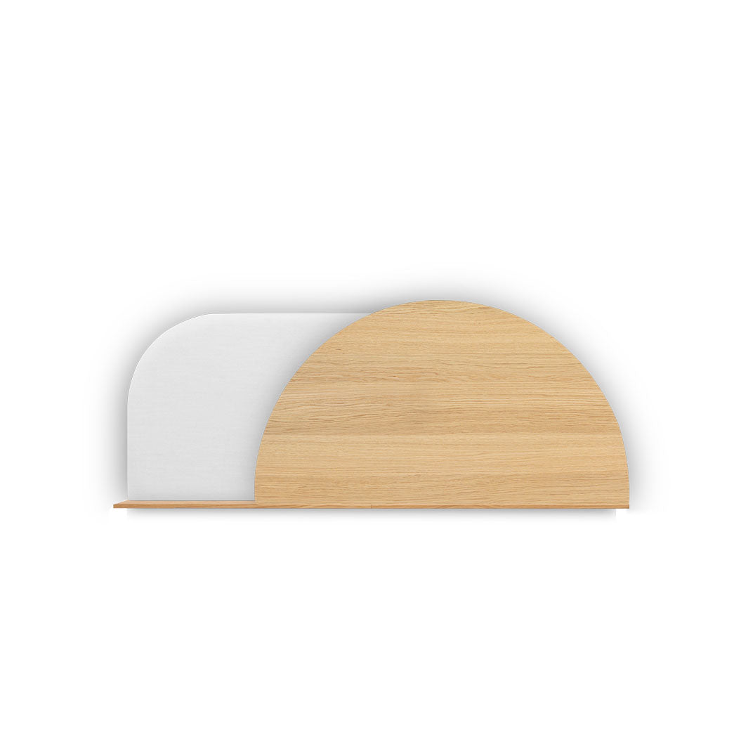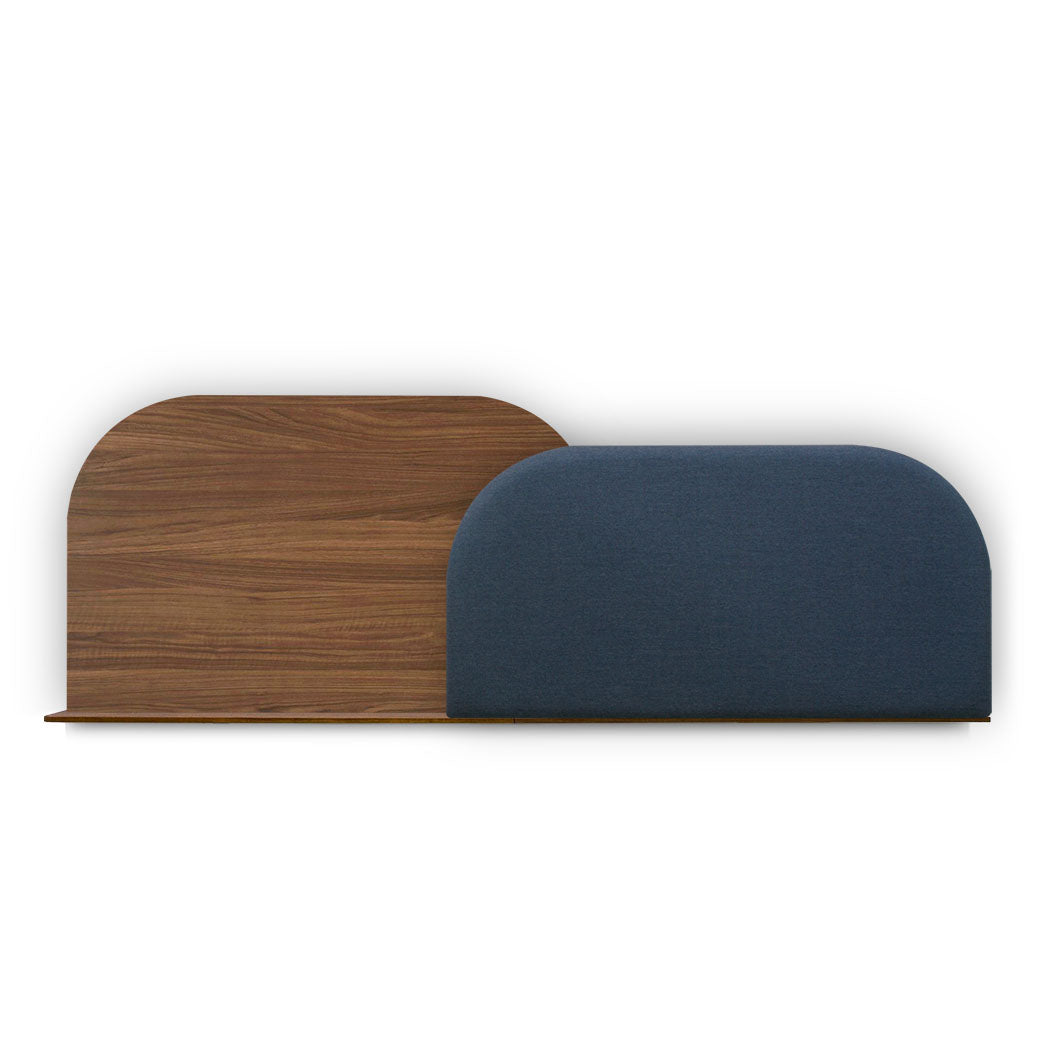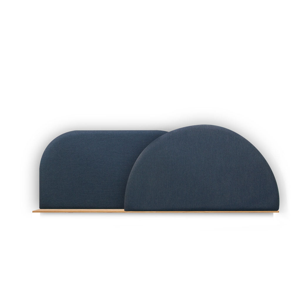 Nuestro Cabecero Alba consta de dos paneles que se superponen en el centro, disponibles en acabado de madera sostenible o hermoso textil, y combinados con un estante oculto para pequeños objetos cotidianos. Decida fácilmente en casa cómo instalarlos gracias a que todos los paneles son intercambiables. La pieza se completa con la posibilidad de añadir iluminación de fondo minimalista y regulable.