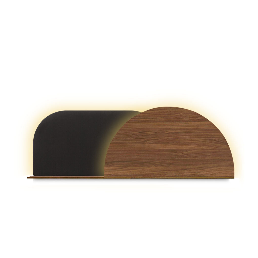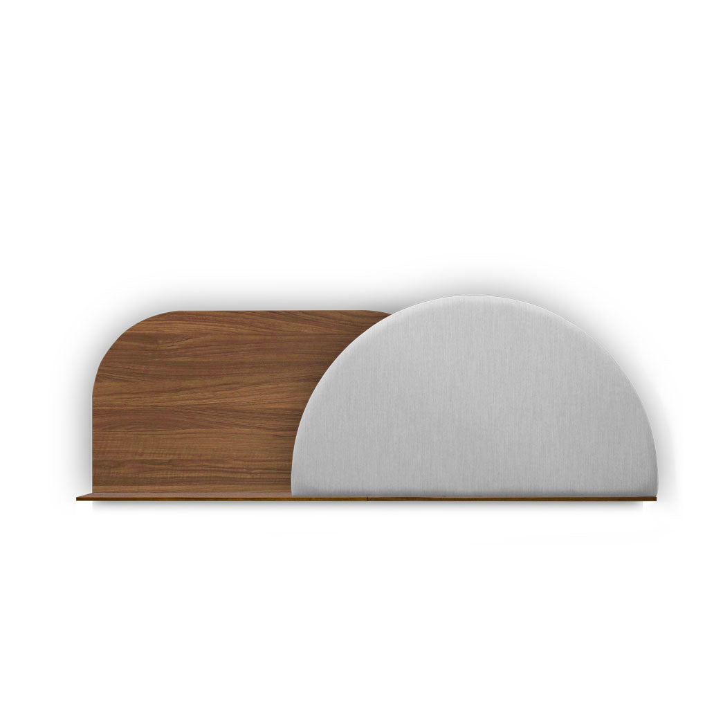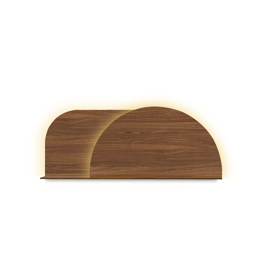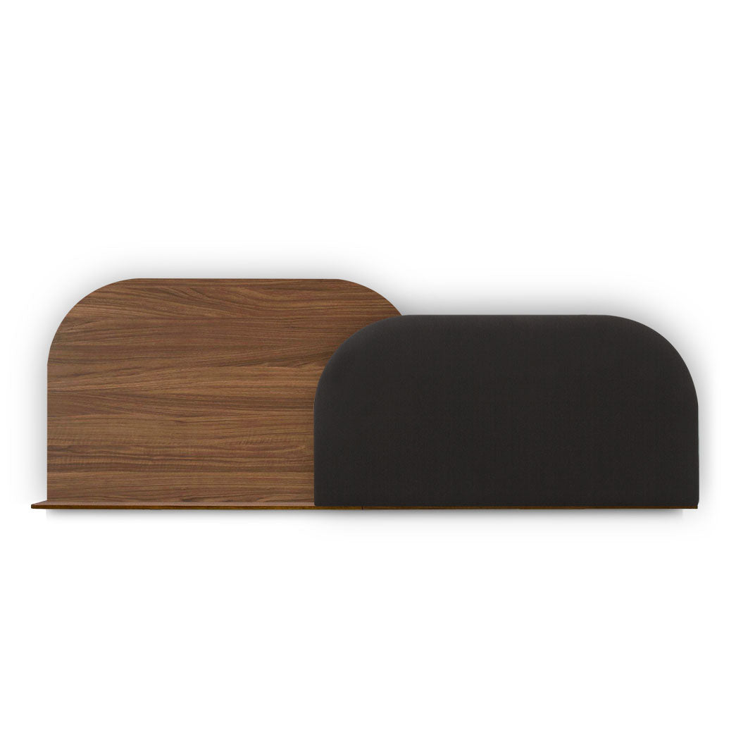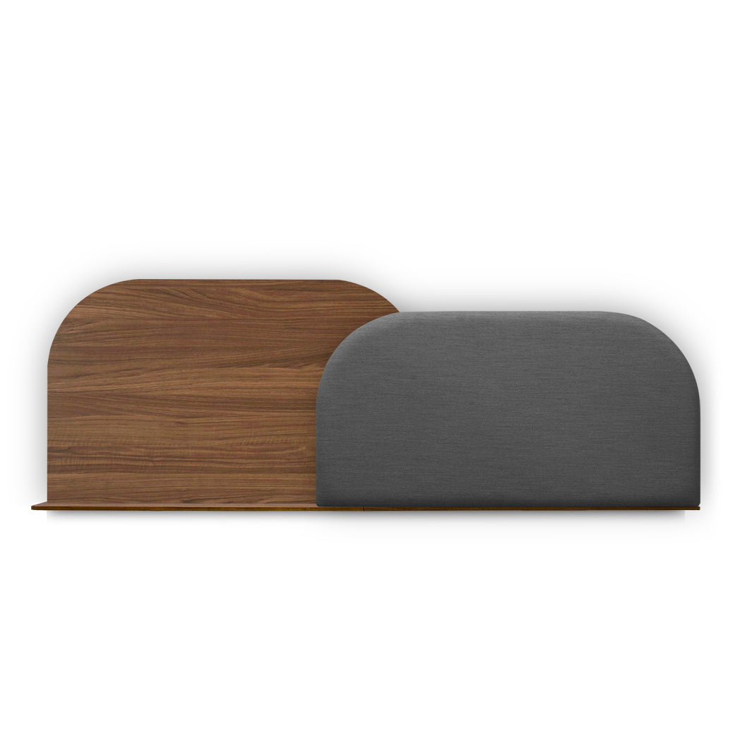Nuestro Cabecero Alba consta de dos paneles que se superponen en el centro, disponibles en acabado de madera sostenible o hermoso textil, y combinados con un estante oculto para pequeños objetos cotidianos. Decida fácilmente en casa cómo instalarlos gracias a que todos los paneles son intercambiables. La pieza se completa con la posibilidad de añadir iluminación de fondo minimalista y regulable.