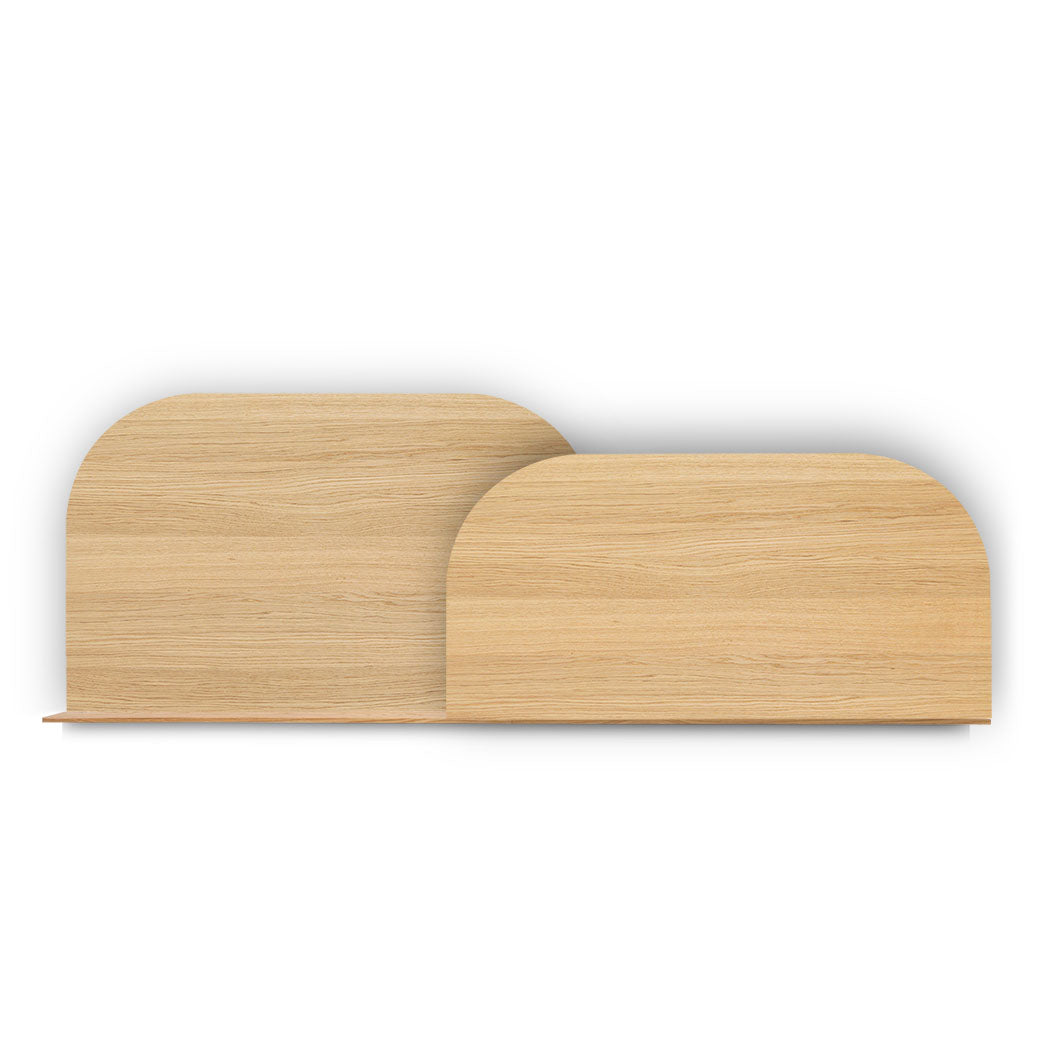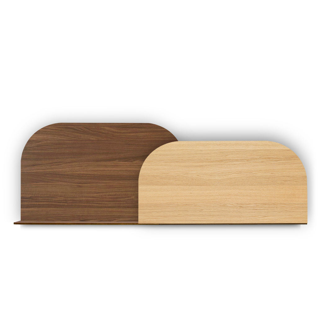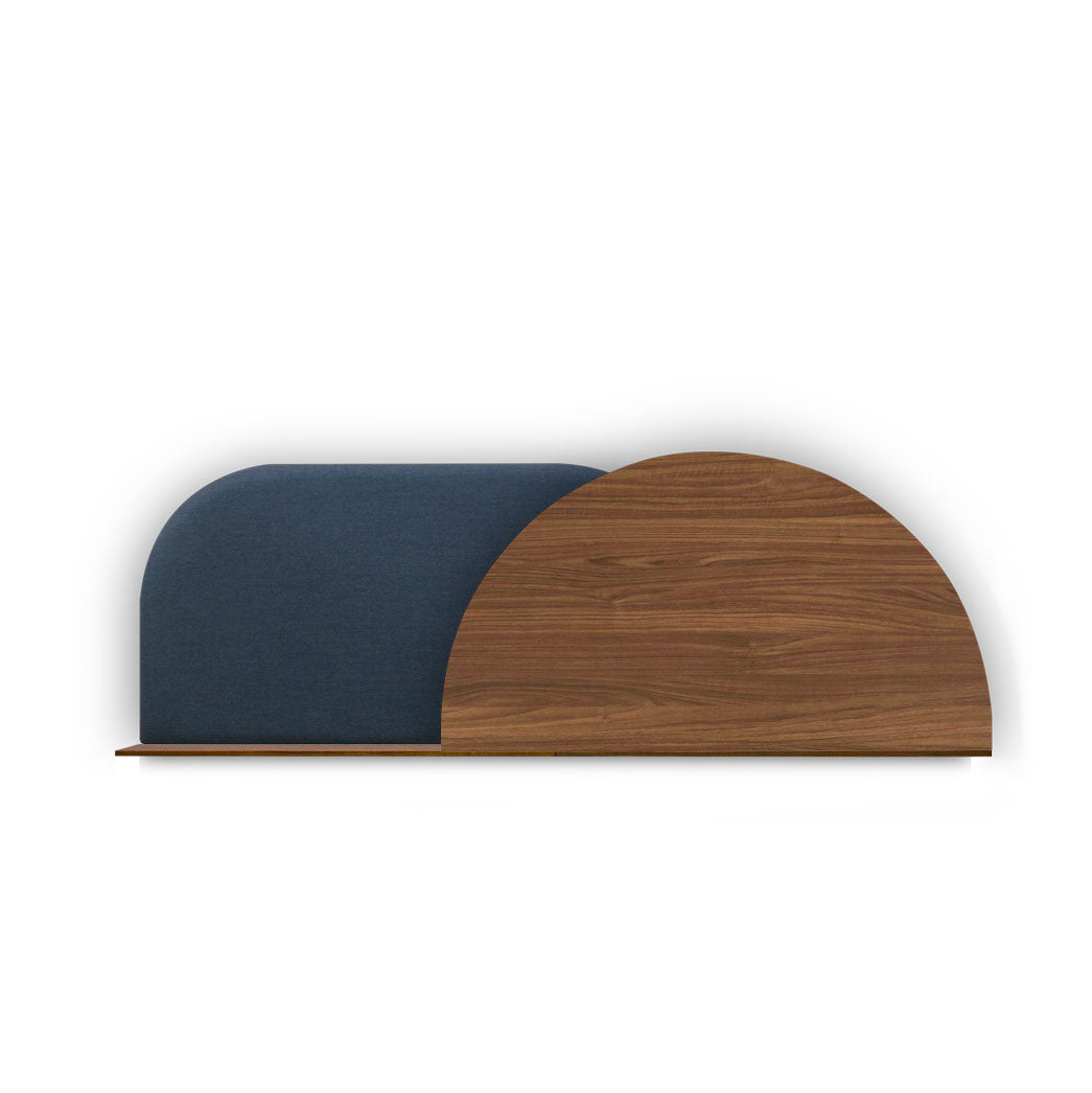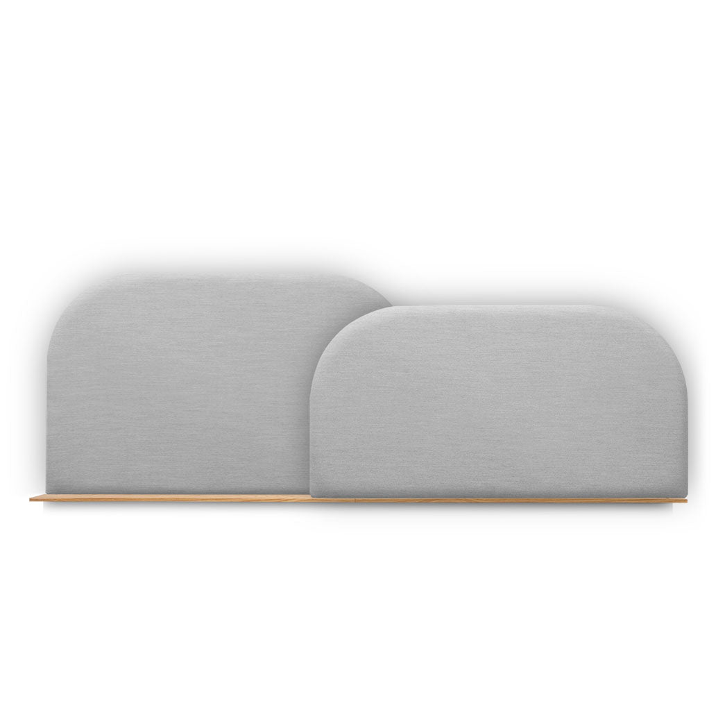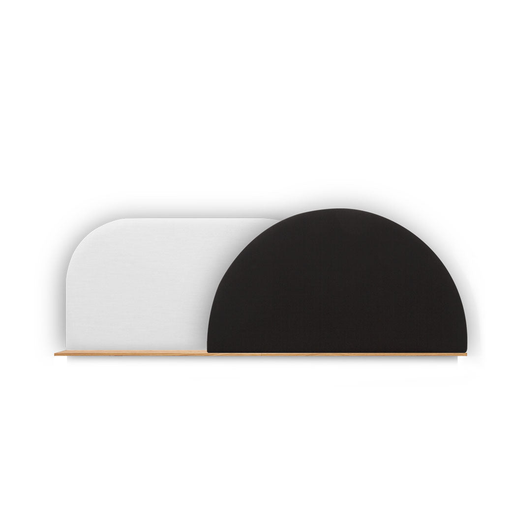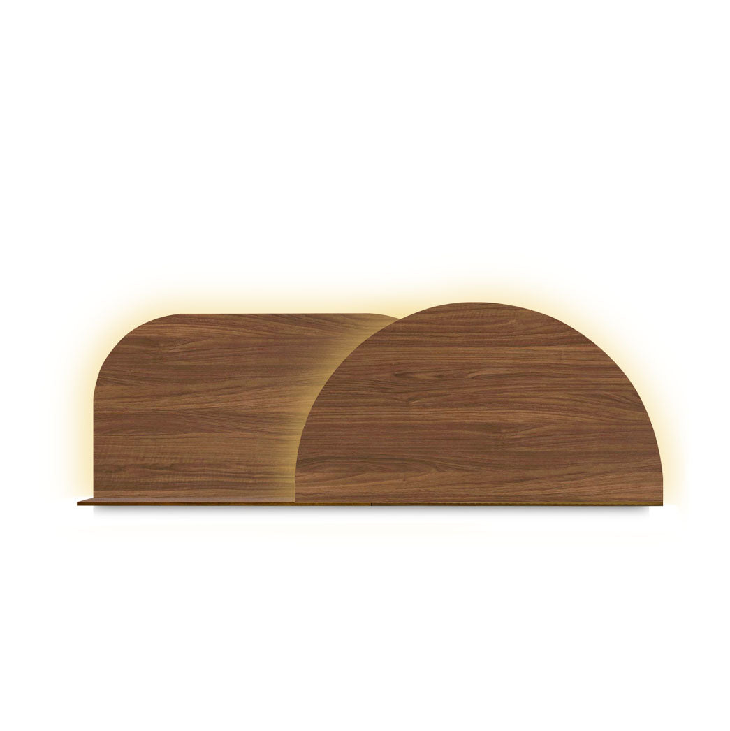 Nuestro Cabecero Alba consta de dos paneles que se superponen en el centro, disponibles en acabado de madera sostenible o hermoso textil, y combinados con un estante oculto para pequeños objetos cotidianos. Decida fácilmente en casa cómo instalarlos gracias a que todos los paneles son intercambiables. La pieza se completa con la posibilidad de añadir iluminación de fondo minimalista y regulable.