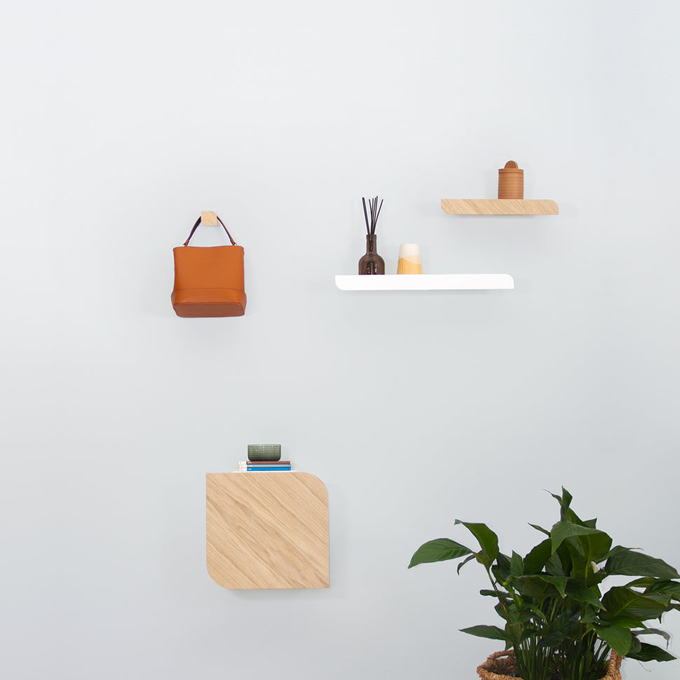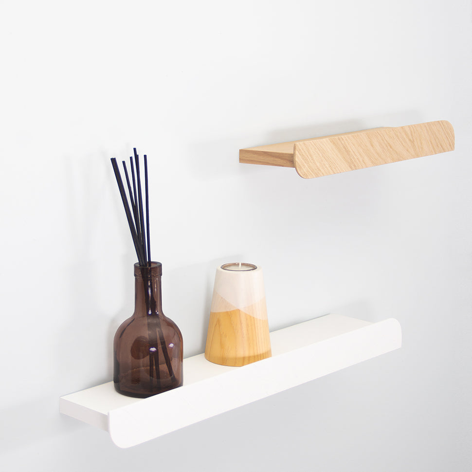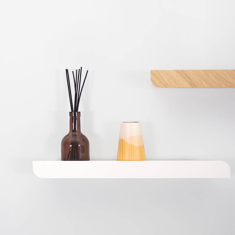 Minimalistas y únicas, nuestras estanterías de pared Cielo aportan personalidad y un toque diferente a sus paredes con sus formas redondeadas y su funcionalidad.