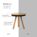 Grâce à sa nature compacte, ses petites dimensions et son poids raisonnable, le Batea S est idéal comme table de chevet ou table d'appoint. De plus, il est parfait pour poser un verre ou une collation, car son plateau amovible le rend très pratique pour transporter de la nourriture de la cuisine à votre espace de vie.