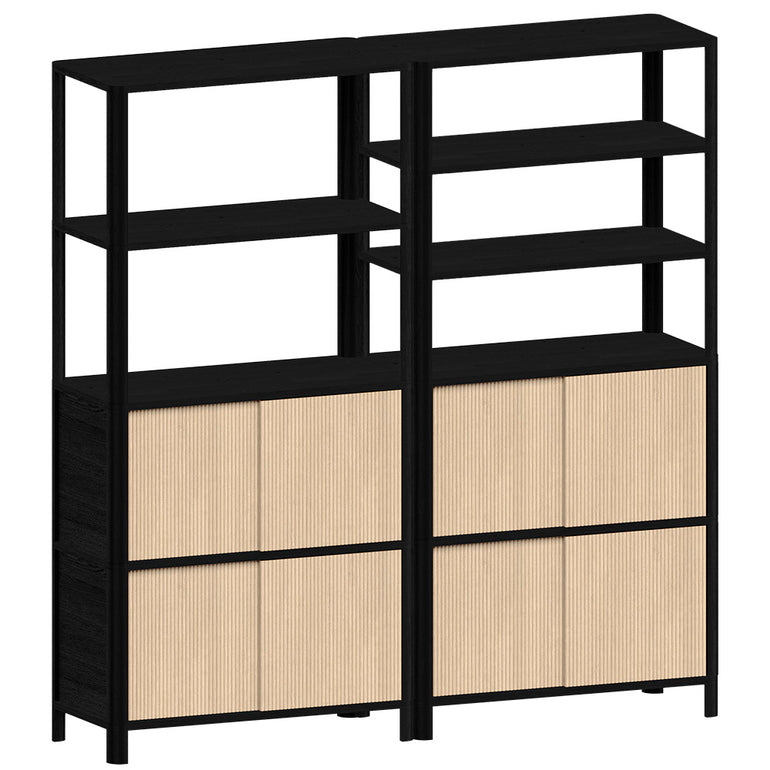 Cloe · Étagère noire (deux unités) avec portes en chêne blanchi pigmenté blanc