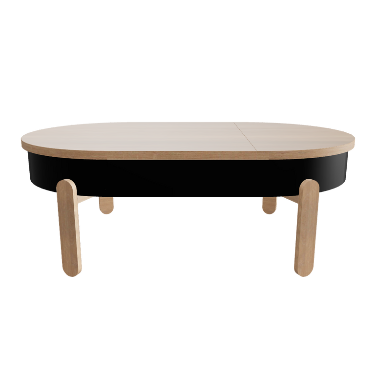 - Plateau plaqué avec finition en bois naturel (Chêne, Noyer ou Chêne laqué pour les couleurs).