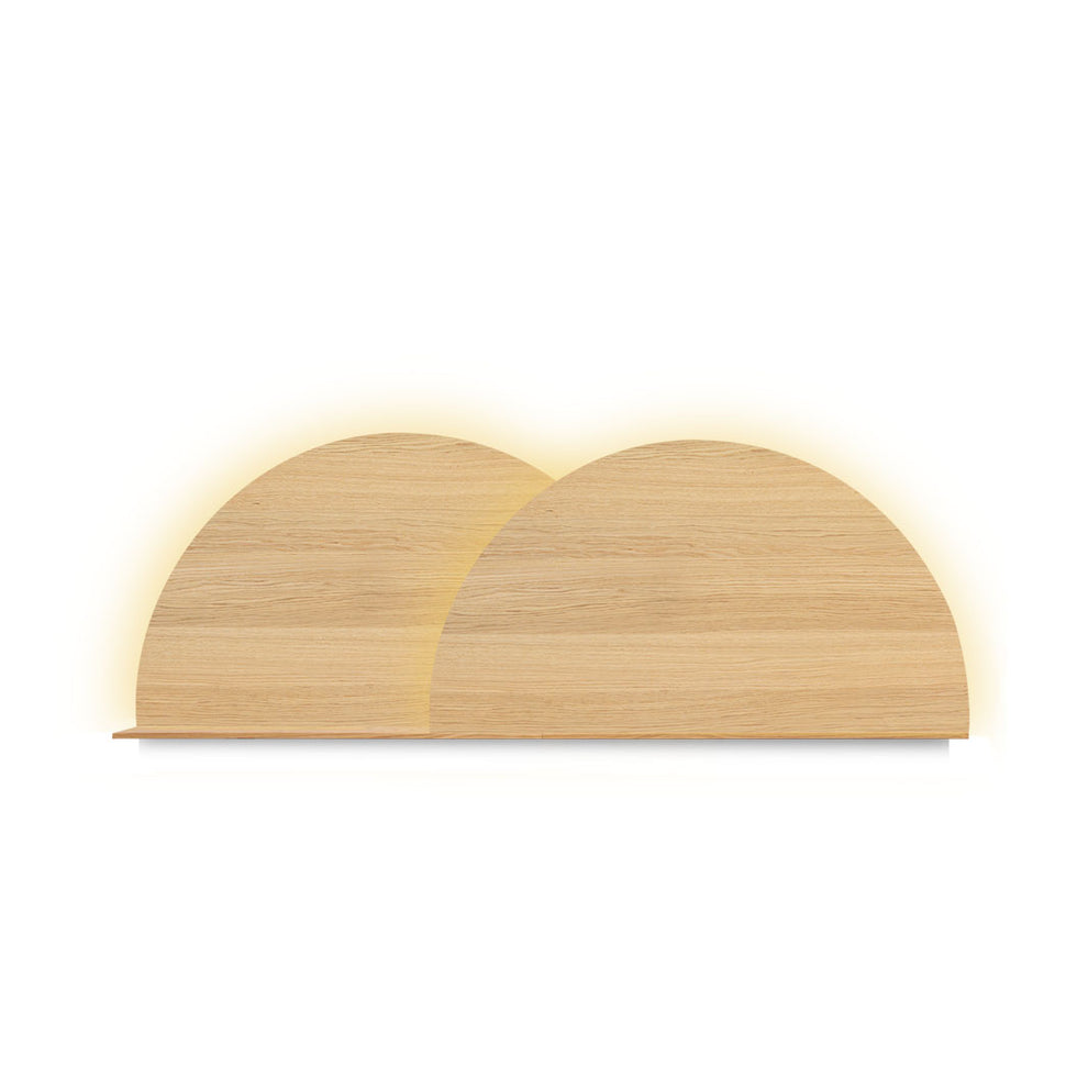 Notre tête de lit Alba se compose de deux panneaux qui se superposent au centre, disponibles en finition bois durable ou en textile élégant, combinés à une étagère cachée pour les petits objets du quotidien. Décidez facilement chez vous comment les installer, car tous les panneaux sont interchangeables. La pièce est complétée par l’option d’un rétroéclairage minimaliste et dimmable.