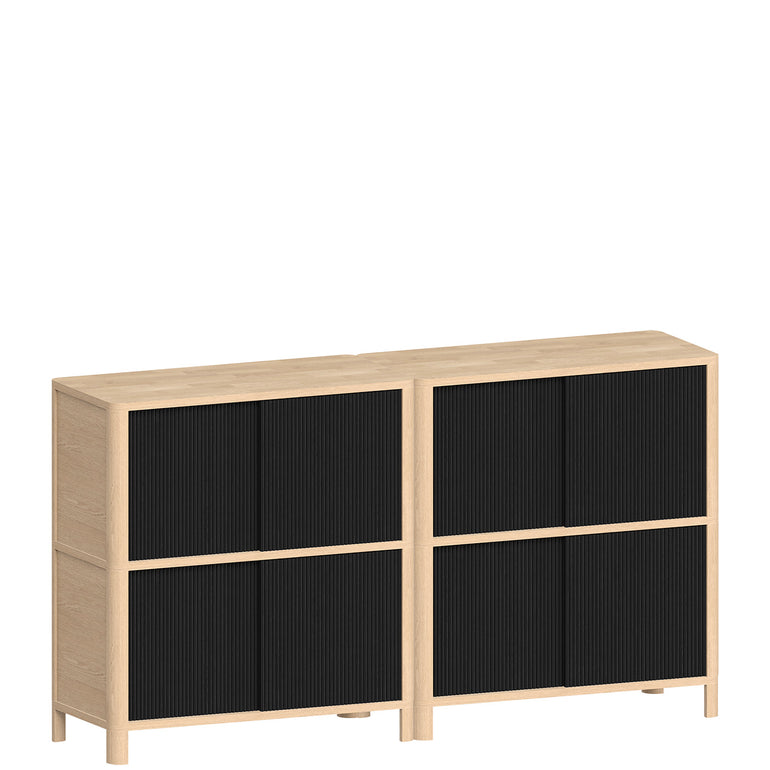 Side and back panels of the closed modules: MDF fiber with natural Oak wood veneer.