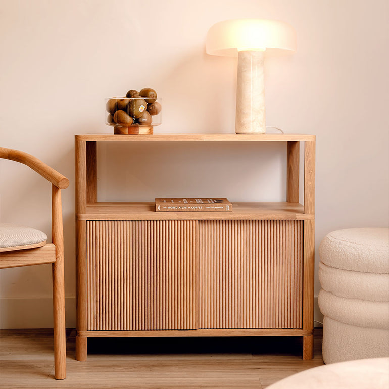 Cloe · Wit gepigmenteerde eikenhouten bijzettafel met houten deuren
